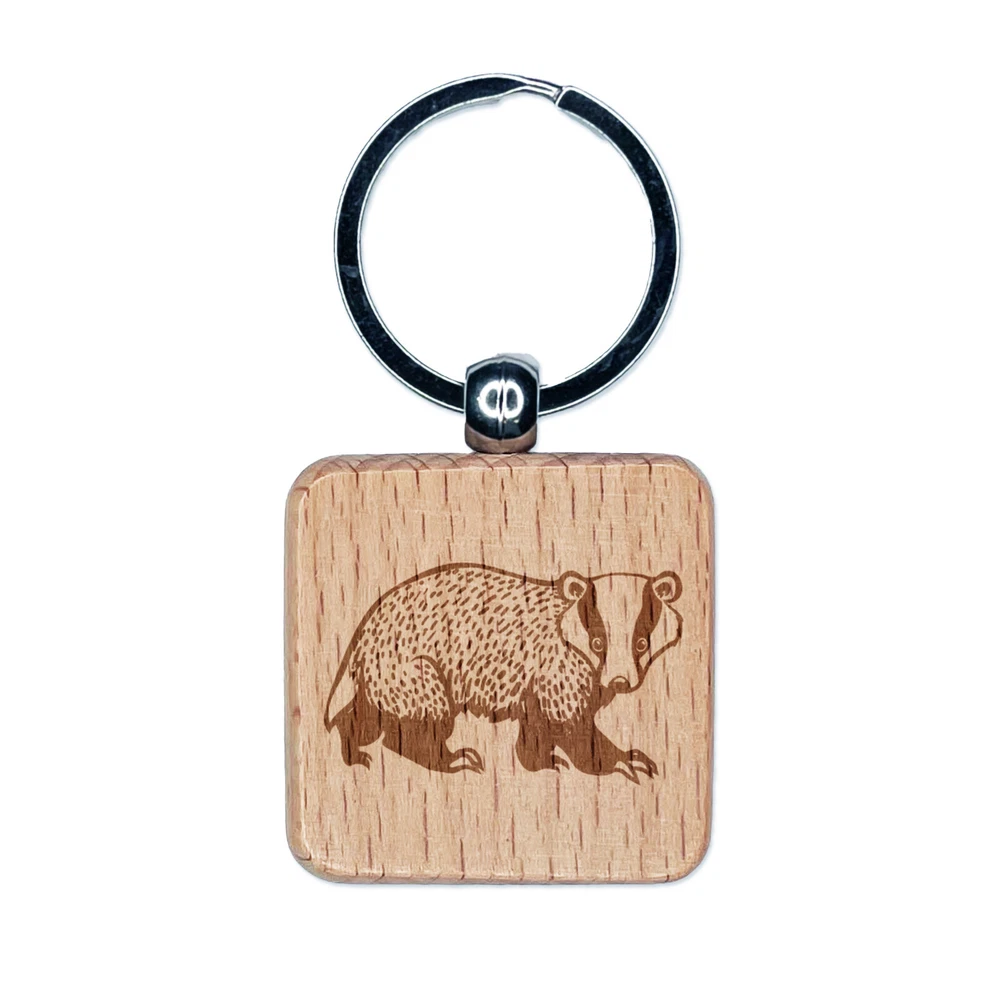 Curious Badger Engraved Wood Square Keychain Tag Charm