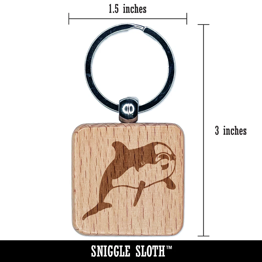 Curious Dolphin Engraved Wood Square Keychain Tag Charm