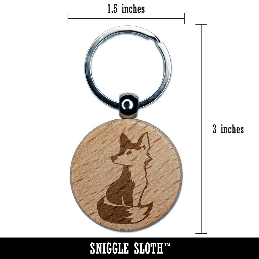 Curious Fox Engraved Wooden Keychain with Sitting Design