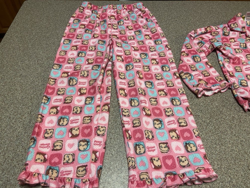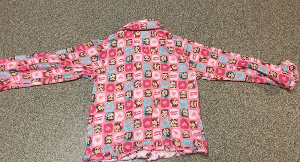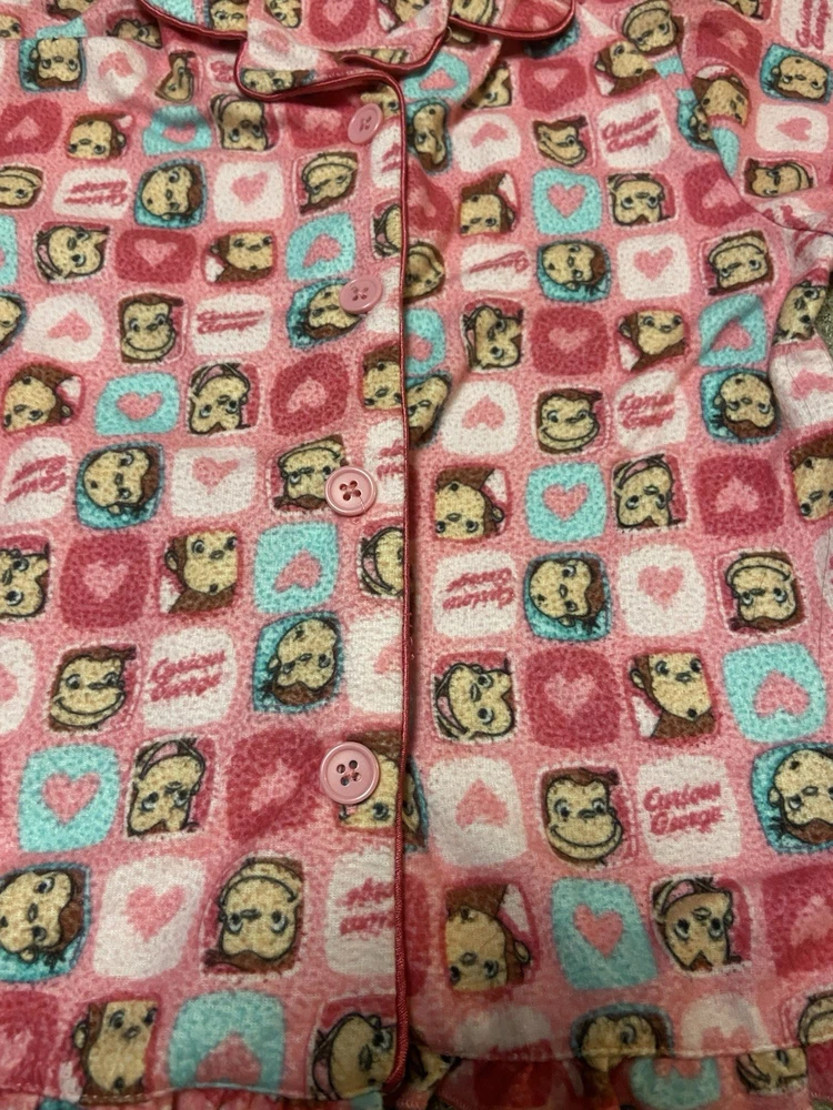This Curious George Girls' Pajama Set in vintage rare size 5 is a charming addition to any young fan's sleepwear collection. The pink long sleeve button-up top and matching bottom feature the beloved Curious George character design, making it perfect for winter and spring seasons. Made from 100% polyester, this two-piece set is machine washable for easy care and is sure to delight any little girl with its whimsical charm.