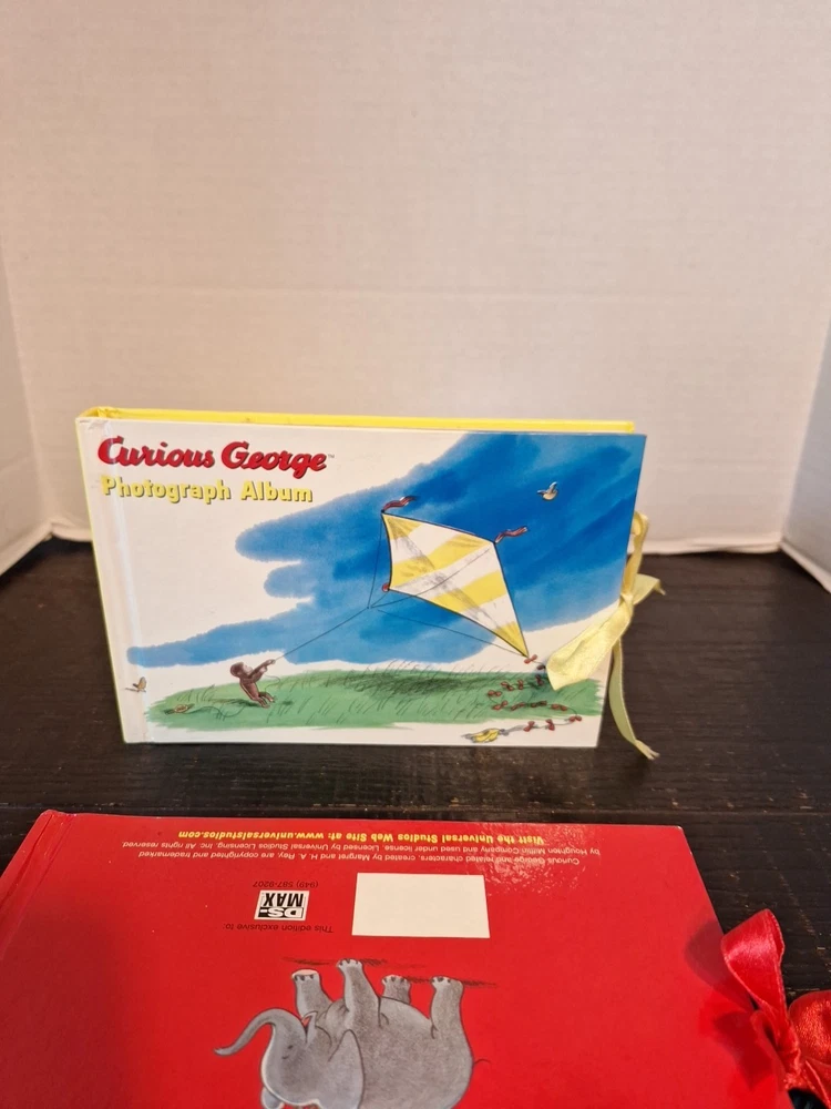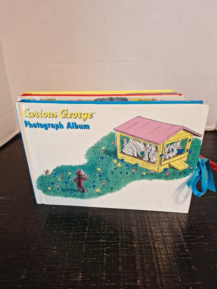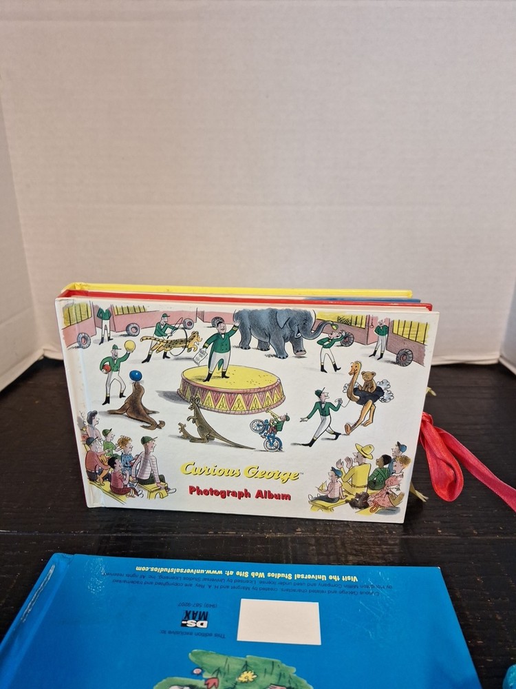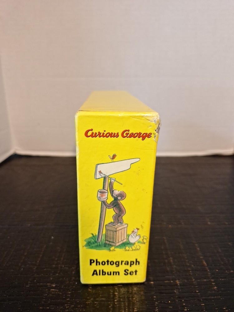 pre owned see pics The Curious George Photograph Albums are a set of three photo albums stored in a single box, perfect for organizing and storing photos in a fun and engaging way for kids. With a theme centered around the beloved character Curious George, these albums provide a creative and entertaining way for children to keep their memories safe and easily accessible. Ideal for young photographers or fans of the popular children's book character, this product offers a playful and functional solution for storing and displaying photos.