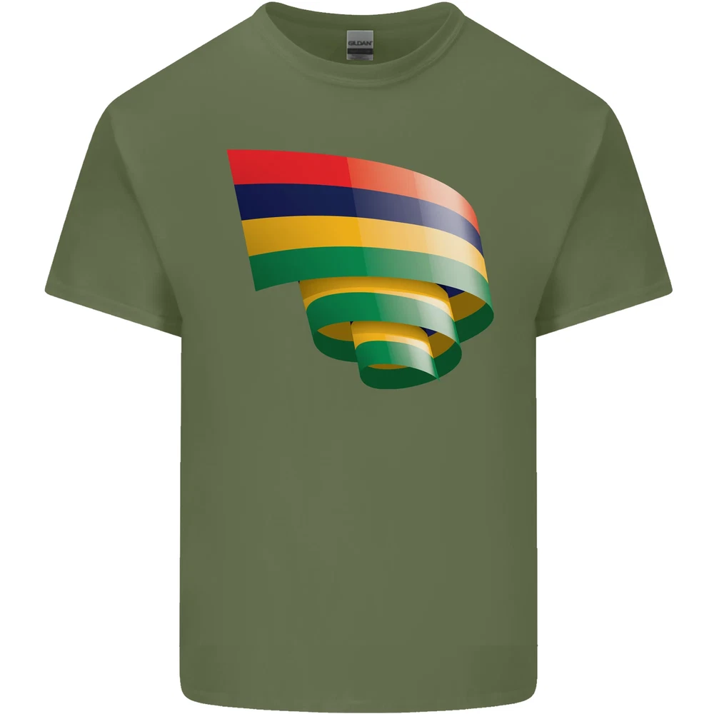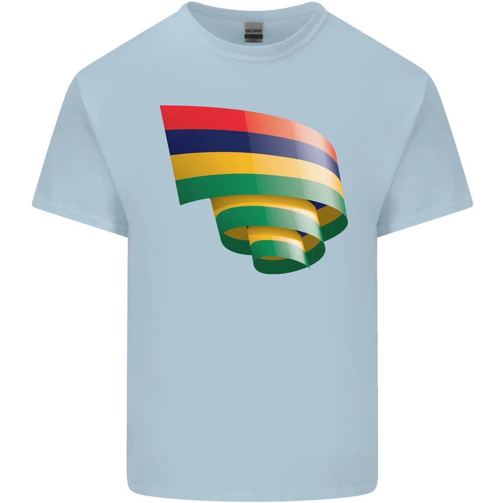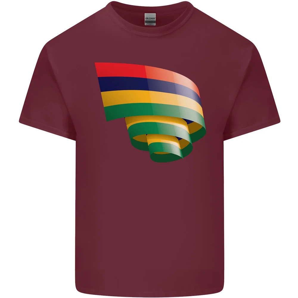 Curled Mauritius Flag Mauritians Day Football Mens Cotton T-Shirt Tee Top