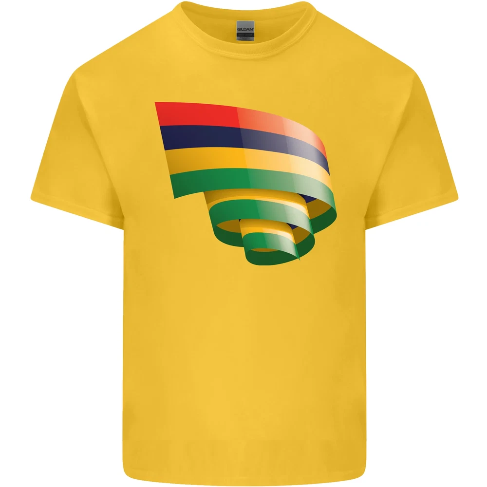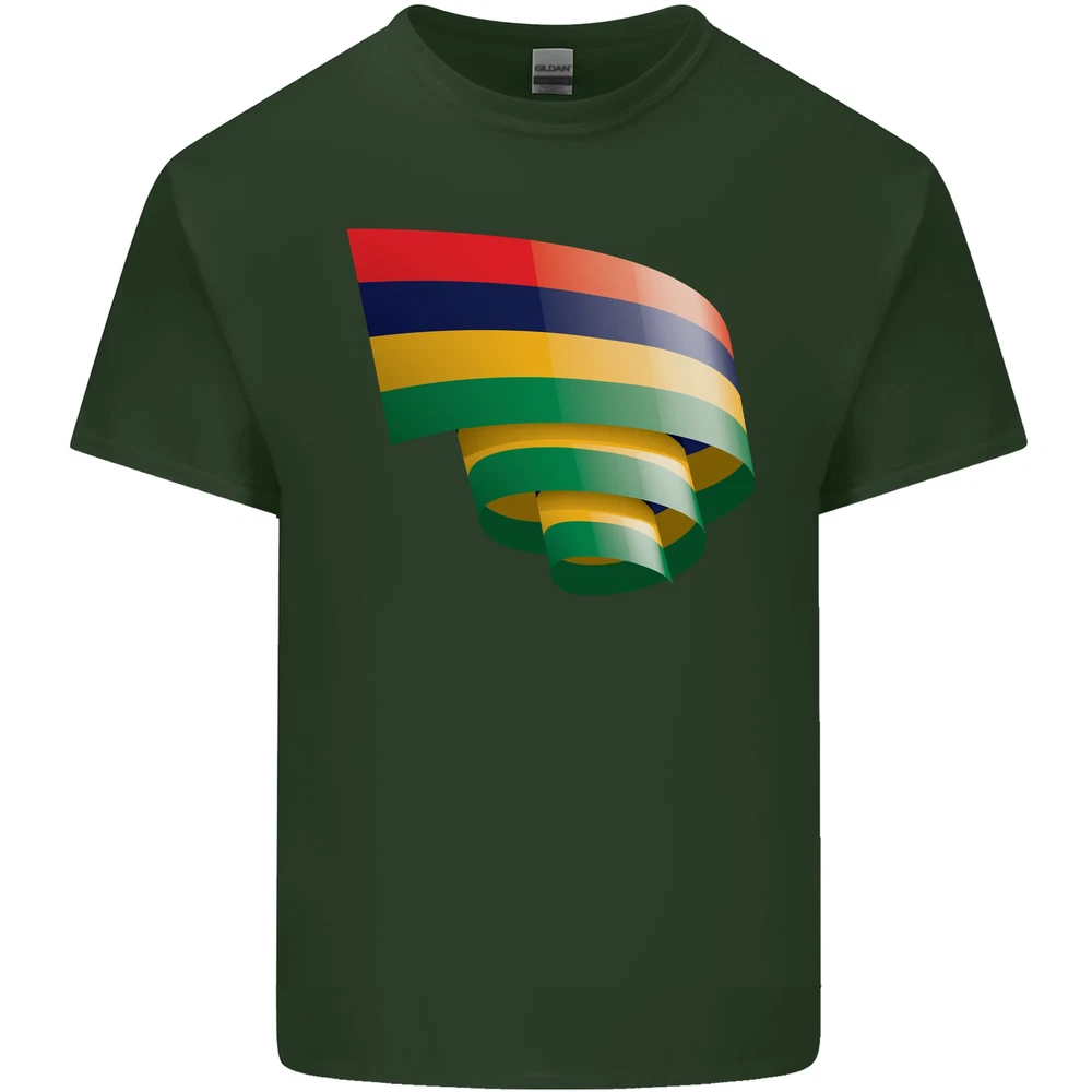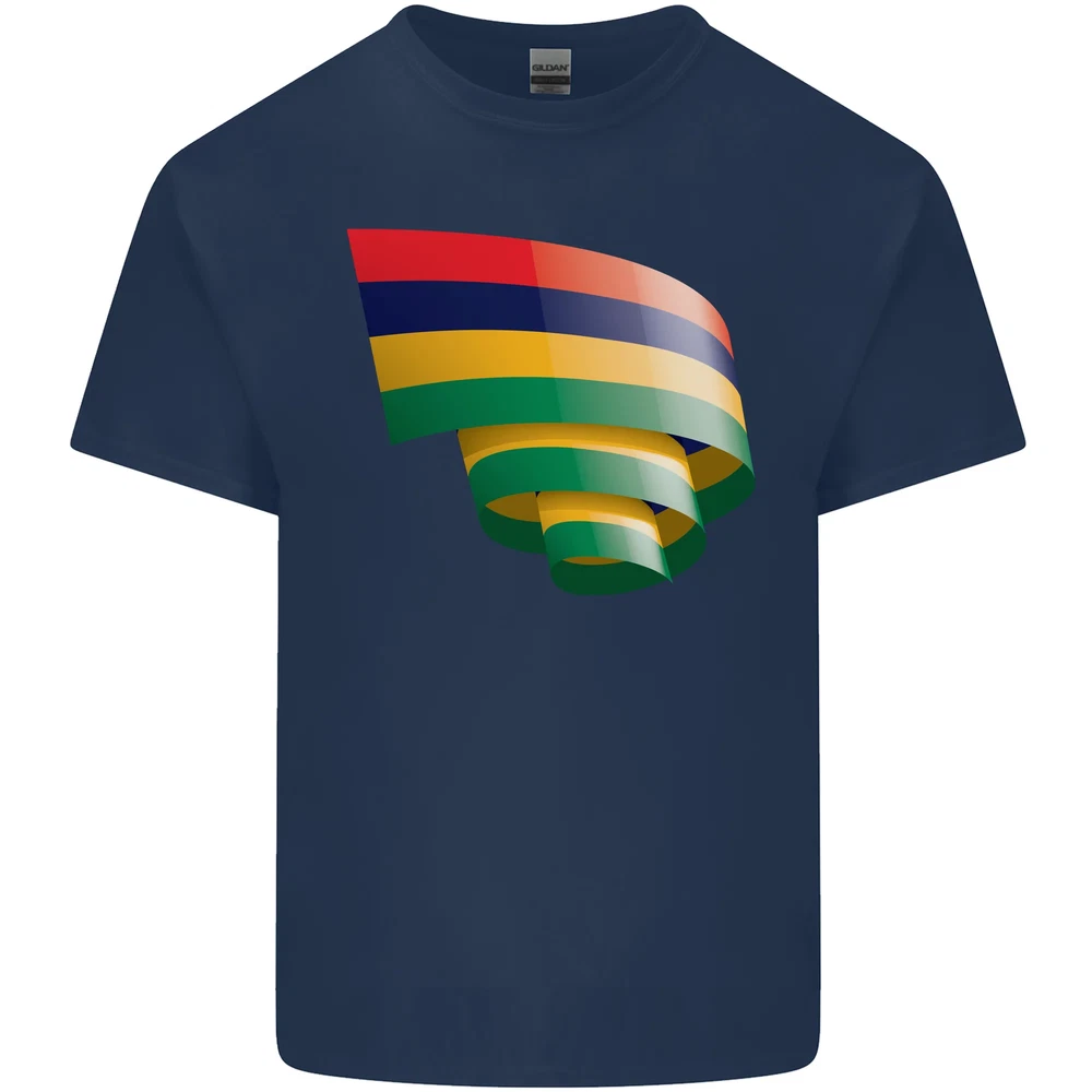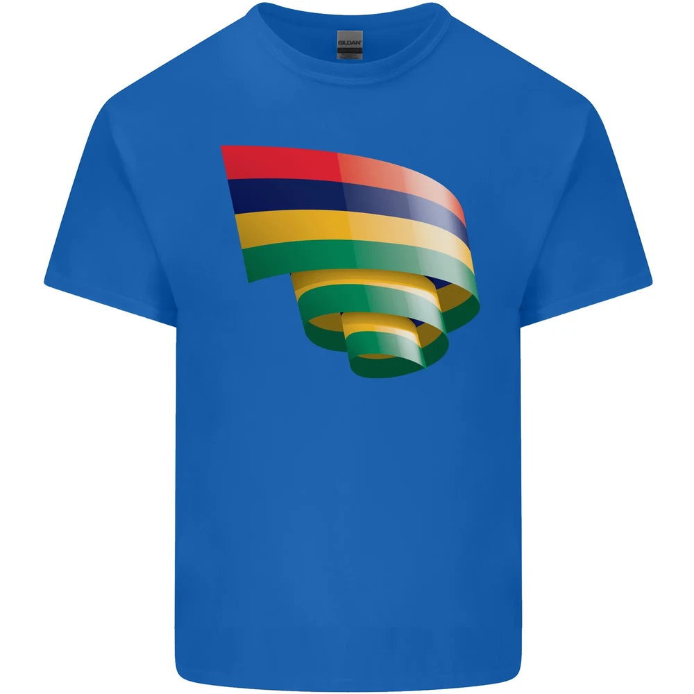Curled Mauritius Flag Mauritians Day Football Mens Cotton T-Shirt Tee Top