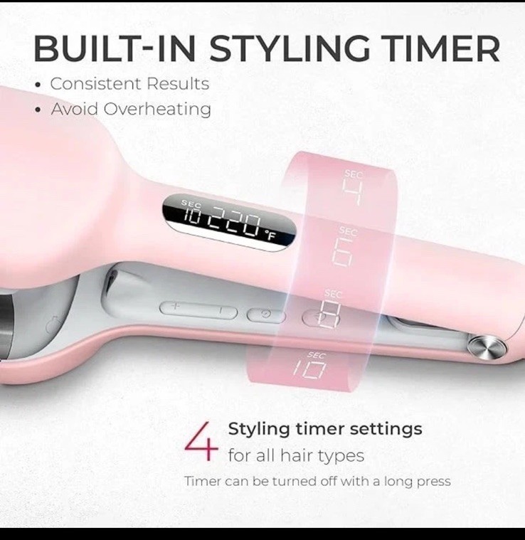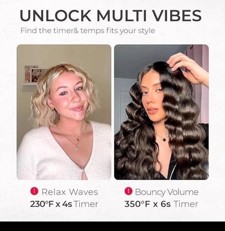 EASY CLAMP, INSTANT WAVE: Say goodbye to hours of practice and hello to stunning daily beachy waves with just one clamp. Your hair transformation journey begins now! NO EXPOSED BARREL, NO BURNS: Embrace the full-wrap insulation design of our TYMO wave curler, diligently safeguarding your fingers and neck from burns while effortlessly creating mesmerizing mermaid waves. Dive into a worry-free, enchanting hair curler experience today! VOLUMINOUS ALL DAY: The upgraded 1-inch roller size makes the curling iron lighter and smaller, easier to use, and easy to create voluminous hairstyles. Advanced dual-sided heating technology ensures waves that retain their shape and endurance for an extended period. FAST & STABLE HEATING: Equipped with 4 built-in PTC heating elements, heat 4 times faster within 30 seconds. The PTC temperature control system ensures precise and consistent heating, protecting your hair from overhead damage. DAMAGE WORRY-FREE: With 40 million negative ions help neutralize static, leaving waves silky and free from flyaways. Combo patented T-GLOSS tourmaline ceramic coating infused with nourishing essence ensures each wave is treated & healthy. In excellent condition! Only used a couple of times.