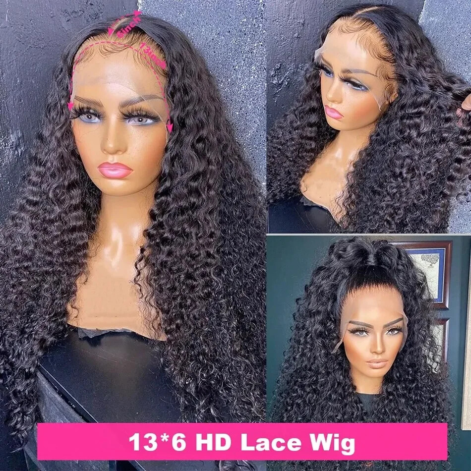$ 67.7513x6 HD Lace Front Wig Brazilian Water Curly Human Hair Transparent Lace