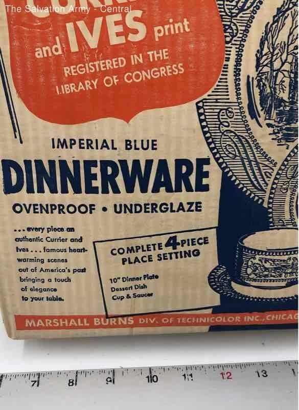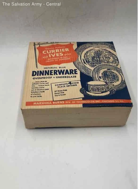 Title : Currier & Ives Imperial Blue The Old Grist Mill Dish Set 4 Piece Place Setting Shape : Round Condition: Good - shows some signs Material: Ceramic Brand: Currier & Ives Color: White Blue All net proceeds will support The Salvation Army - Adult Rehabilitation Centers. Thank you for your support! Customer Service Hours: Monday - Friday 8:00am - 4:00pm EST Updated Shipping Policy Starting April 1, 2023 Flat-rate Shipping Service To be eligible for combined shipping, all invoiced items must fall under our flat-rate shipping policy. When orders are combined under the flat-rate shipping policy, larger items will be charged $14.99 for the first item and an additional $6 shipping fee per additional item. Smaller items will be charged $9.99 for the first item a $1 shipping fee will be charged per additional item. Requests for combined shipments must contain less than 20 items per shipment and cannot include items that are sold with calculated shipping. These items include large or bulky items, instruments, artwork, or framed items. Calculated Shipping Service Please note that items that are sold with calculated shipping cannot be combined with other items in the same shipment. This is because these items may include large or bulky items, instruments, artwork, or framed items, which require separate shipping arrangements. Thank you for your understanding.
