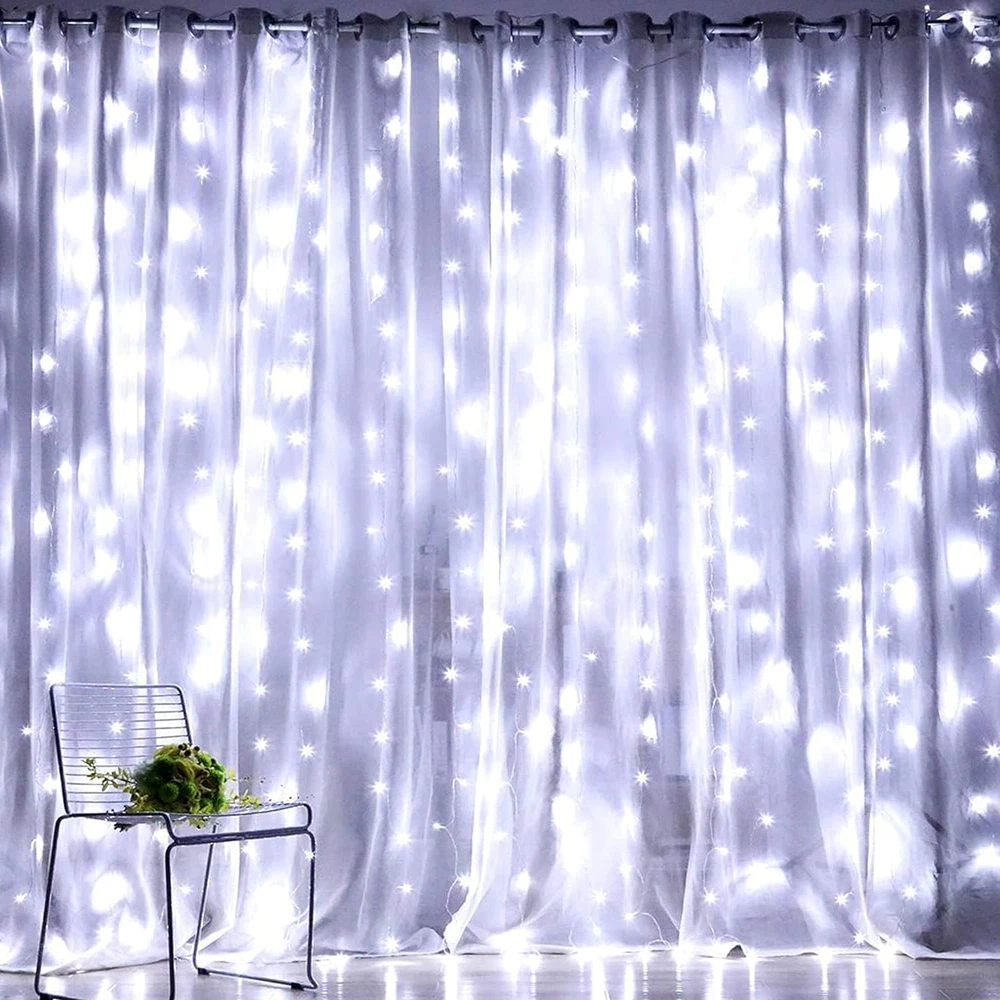 Curtain String Lights, 300 LED 9.8Ft X 9.8Ft 8 Lighting Modes Fairy Lights USB P