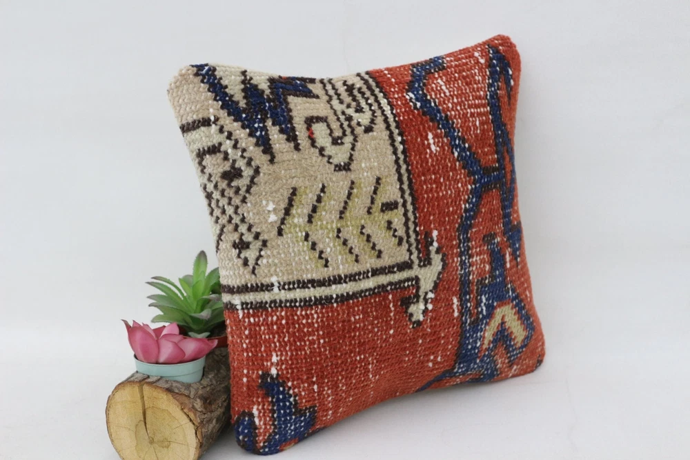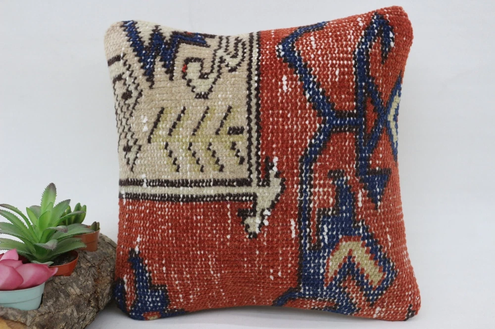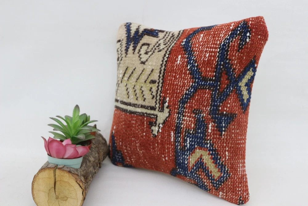 Cushion, Handmade Kilim Cushion, Gift Pillow, 12"x12" Red Cushion Cover