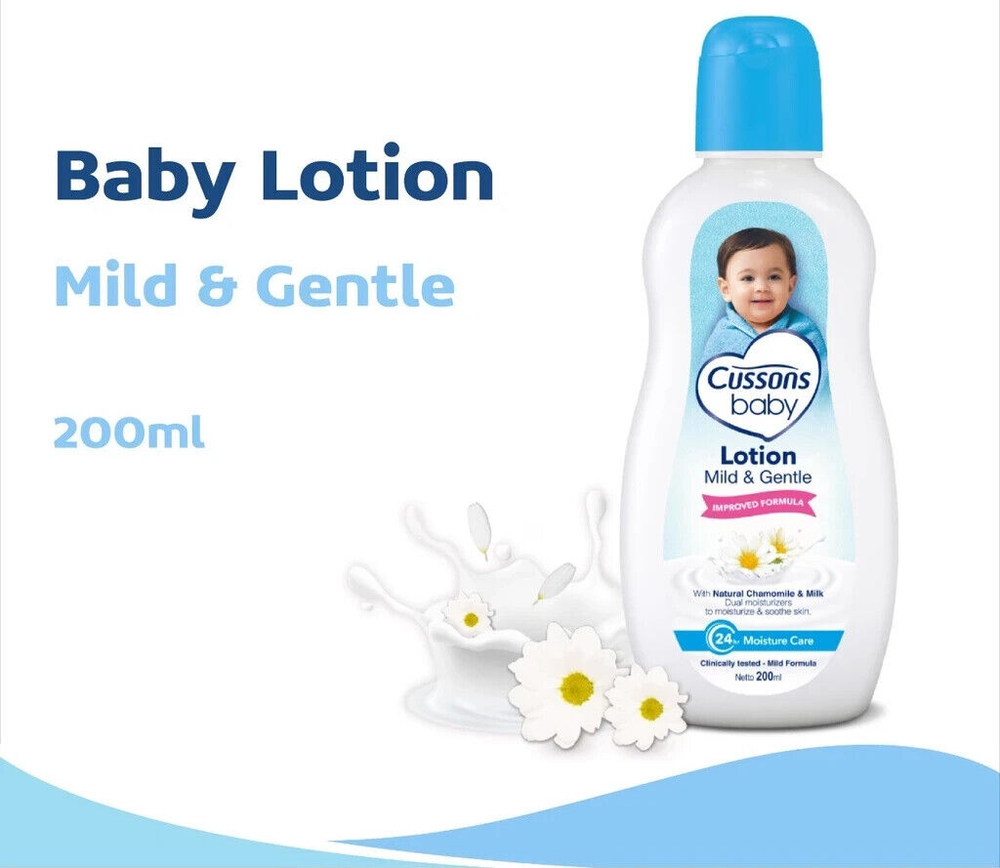 Cussons Baby Lotion Mild & Gentle - Baby Lotion 200ml -Cussons Baby baby lotion has been tested by dermatologists so it is safe for baby's skin -Contains a combination of Milk and Chamomile that is healthy and maintains the comfort of baby's skin -Cussons Baby baby lotion is easily absorbed and does not cause a sticky feeling -Has a distinctive and soft baby scent that makes babies more adorable -Use Cussons Baby baby lotion after bathing to keep skin healthy and maintained
