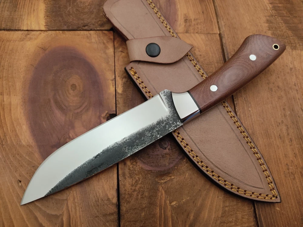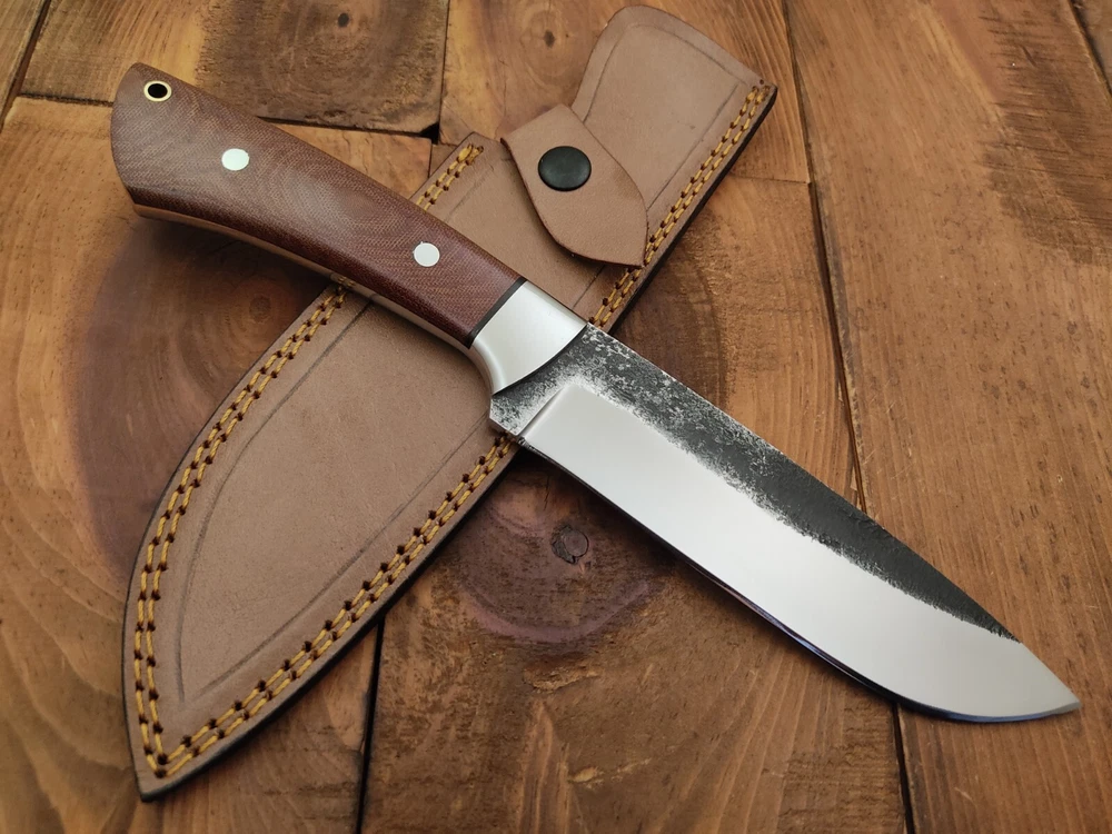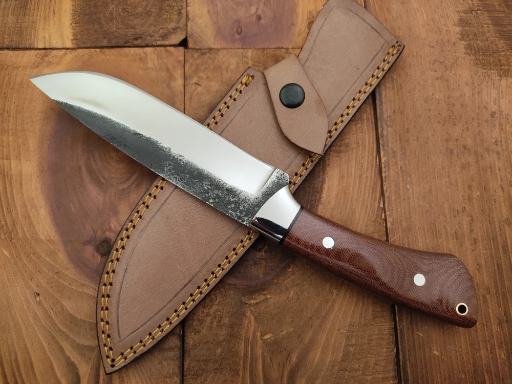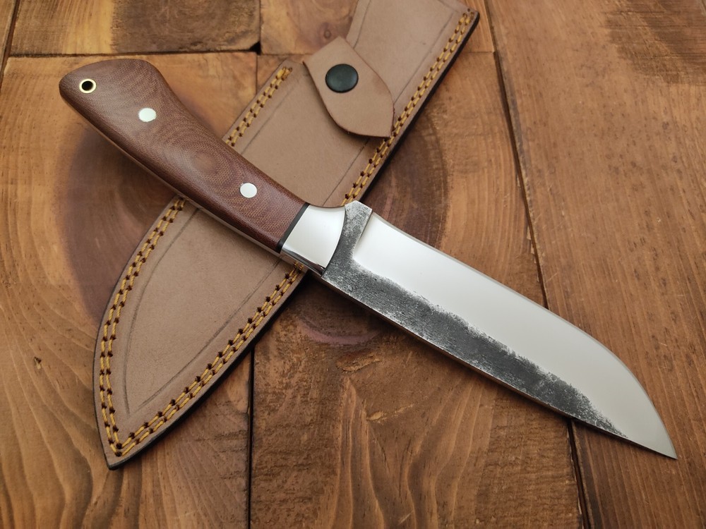 ITEM # HM-145 Fabulous Unique THUNDER STORKE Custom MADE KNIFE Custom Handmade Forged 1095 High Carbon Steel Scandi Grind Bush Craft Camping Survival Outdoor Vintage Hunting Fixed Blade Knife High Carbon Steel holds an edge very well and is optimum for hunting and skinning use as well as tactical and military tasks. The steel is very corrosive and will tarnish and turn the blade black when blood and acidic liquids or chemicals get onto the blade. The blade will still work fine, but will lose the satin color when it was new. Stainless Steel Bolster & G10 Micarta Handle 1095 High Carbon Steel Blade RAZOR SHARP Gorgeous Handle & Blade 11.2" Long | Blade is 6" Long | Handle is 5.2 " 5 mm Thick Blade | Beautiful Worked Blade & Handle WORK OF ART This prestigious unique HUNTING knife was designed and custom made by THUNDERSTORKE . Blade was given excellent heat treatment and Rockwell hardness of the blade 58 to 60 . PAYMENT: As Per Ebay Requirement DISPATCH TIME: 2 to 3 DAYS AFTER RECEIVING YOUR PAYMENT COURIER / SHIPPING: When we print the postage label there is a number that is on the label. This number is called a "Delivery Confirmation Number". The post office is not like UPS or FEDX where they scan the mail at the receipt point and then track it to your door. What the post office does is scan the item when it is delivered (if they choose to) and then you will see that it was delivered. Sometimes they do scan it when you drop it off, but this is rare. If they did scan it at a sorting facility, you see it moving across the USA. But this is very rare. - eBay confuses the buyer with the "tracking number" next to the post offices "delivery confirmation number" when in reality there is not a tracking number. You can ask this at the post office and they will concur. We print labels off the internet using eBay's USPS shipping program and then we drop the packages off at the post office, similar if you were mailing a stamped letter. The post office is supposed to scan it "received" and they do this about 50% of the time. But sometimes they do not scan them. Do not worry, we did mail the item and it is on it's way to you. COMBINE SHIPPING OFFER: We Do Combine Shipping Discount On Multiple Purchase are as Follow. BUYER FEEDBACK AND Detailed Seller Ratings (DSR) SCORES : We spend a lot of time trying to describe our knives 100% perfect in detail, but sometimes we miss things. In the event that we missed something, upon inspection of the item when you receive it, let us know by contacting us via the "Contact Seller" link (next to our user ID profile) and allow us to solve your problem before leaving us low DSR scores (Detailed Seller Ratings) or neutral and negative feedback. - Help us, help ourselves to do better, with our future business on eBay by allowing us to correct our faults and fix the sale with you to a positive. We need to keep our scores high to continue to offer our great knives for sale on eBay. KNIFE CARE and SHEATHS : Leather sheaths pull moisture out of the air and tend to rust knife blades if not stored properly. When you are done using the knife, store it away from the leather sheath and put gun oil, Seal 1, or a similar protectant on the blade and store. Damascus, 1095HC, and D2 can rust and develop stains if not lubricated. AGE RESTRICTION: WE DON'T SELL KNIVES TO ANY ONE WHO IS UNDER AGE . GUARANTEE: If you are not happy with your purchase, we offer you a peace of mind guarantee if you return the product within 7 working days. We will refund your money back immediately ON RECEIVING THE KNIFE BACK IN ORIGINAL CONDITION. DELIBERATE TAMPERING WITH THE PRODUCT OR MISUSE WILL NOT QUALIFY FOR THE REFUND. SHIPPING CHARGES ARE NON-REFUNDABLE. DISCLAIMER: WHEN YOU ARE BIDDING ON THIS KNIFE YOU ARE CONFIRMING US THAT YOUR AGE QUALIFIES FOR THIS PURCHASE AND THIS IS A LEGAL PURCHASE. TAKES NO RESPONSIBILITY FOR ANY ILLEGAL PURCHASE Thank you, - Props in the Photos are NOT INCLUDED. Knife & Sheath ONLY .