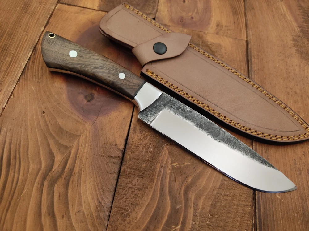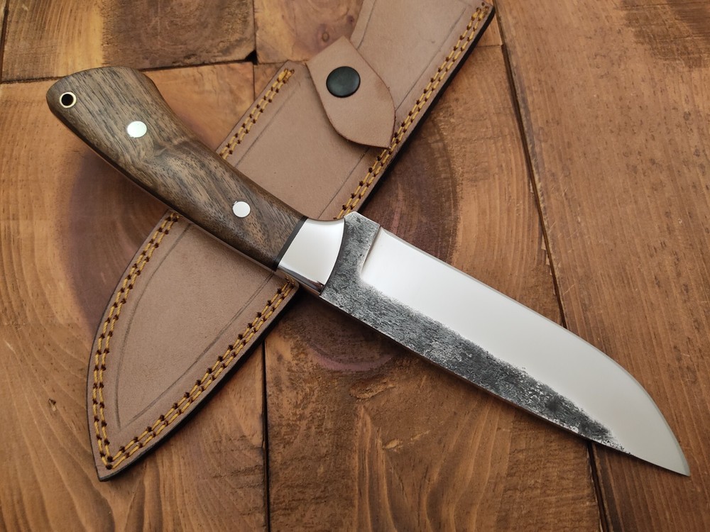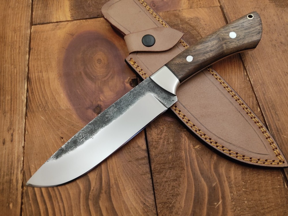 ITEM # HM-143 Fabulous Unique THUNDER STORKE Custom MADE KNIFE Custom Handmade Forged 1095 High Carbon Steel Scandi Grind Bush Craft Camping Survival Outdoor Vintage Hunting Fixed Blade Knife High Carbon Steel holds an edge very well and is optimum for hunting and skinning use as well as tactical and military tasks. The steel is very corrosive and will tarnish and turn the blade black when blood and acidic liquids or chemicals get onto the blade. The blade will still work fine, but will lose the satin color when it was new. Stainless Steel Bolster & Rose Wood Handle 1095 High Carbon Steel Blade RAZOR SHARP Gorgeous Handle & Blade 11.2" Long | Blade is 6" Long | Handle is 5.2 " 5 mm Thick Blade | Beautiful Worked Blade & Handle WORK OF ART This prestigious unique HUNTING knife was designed and custom made by THUNDERSTORKE . Blade was given excellent heat treatment and Rockwell hardness of the blade 58 to 60 . PAYMENT: As Per Ebay Requirement DISPATCH TIME: 2 to 3 DAYS AFTER RECEIVING YOUR PAYMENT COURIER / SHIPPING: When we print the postage label there is a number that is on the label. This number is called a "Delivery Confirmation Number". The post office is not like UPS or FEDX where they scan the mail at the receipt point and then track it to your door. What the post office does is scan the item when it is delivered (if they choose to) and then you will see that it was delivered. Sometimes they do scan it when you drop it off, but this is rare. If they did scan it at a sorting facility, you see it moving across the USA. But this is very rare. - eBay confuses the buyer with the "tracking number" next to the post offices "delivery confirmation number" when in reality there is not a tracking number. You can ask this at the post office and they will concur. We print labels off the internet using eBay's USPS shipping program and then we drop the packages off at the post office, similar if you were mailing a stamped letter. The post office is supposed to scan it "received" and they do this about 50% of the time. But sometimes they do not scan them. Do not worry, we did mail the item and it is on it's way to you. COMBINE SHIPPING OFFER: We Do Combine Shipping Discount On Multiple Purchase are as Follow. BUYER FEEDBACK AND Detailed Seller Ratings (DSR) SCORES : We spend a lot of time trying to describe our knives 100% perfect in detail, but sometimes we miss things. In the event that we missed something, upon inspection of the item when you receive it, let us know by contacting us via the "Contact Seller" link (next to our user ID profile) and allow us to solve your problem before leaving us low DSR scores (Detailed Seller Ratings) or neutral and negative feedback. - Help us, help ourselves to do better, with our future business on eBay by allowing us to correct our faults and fix the sale with you to a positive. We need to keep our scores high to continue to offer our great knives for sale on eBay. KNIFE CARE and SHEATHS : Leather sheaths pull moisture out of the air and tend to rust knife blades if not stored properly. When you are done using the knife, store it away from the leather sheath and put gun oil, Seal 1, or a similar protectant on the blade and store. Damascus, 1095HC, and D2 can rust and develop stains if not lubricated. AGE RESTRICTION: WE DON'T SELL KNIVES TO ANY ONE WHO IS UNDER AGE . GUARANTEE: If you are not happy with your purchase, we offer you a peace of mind guarantee if you return the product within 7 working days. We will refund your money back immediately ON RECEIVING THE KNIFE BACK IN ORIGINAL CONDITION. DELIBERATE TAMPERING WITH THE PRODUCT OR MISUSE WILL NOT QUALIFY FOR THE REFUND. SHIPPING CHARGES ARE NON-REFUNDABLE. DISCLAIMER: WHEN YOU ARE BIDDING ON THIS KNIFE YOU ARE CONFIRMING US THAT YOUR AGE QUALIFIES FOR THIS PURCHASE AND THIS IS A LEGAL PURCHASE. TAKES NO RESPONSIBILITY FOR ANY ILLEGAL PURCHASE Thank you, - Props in the Photos are NOT INCLUDED. Knife & Sheath ONLY .