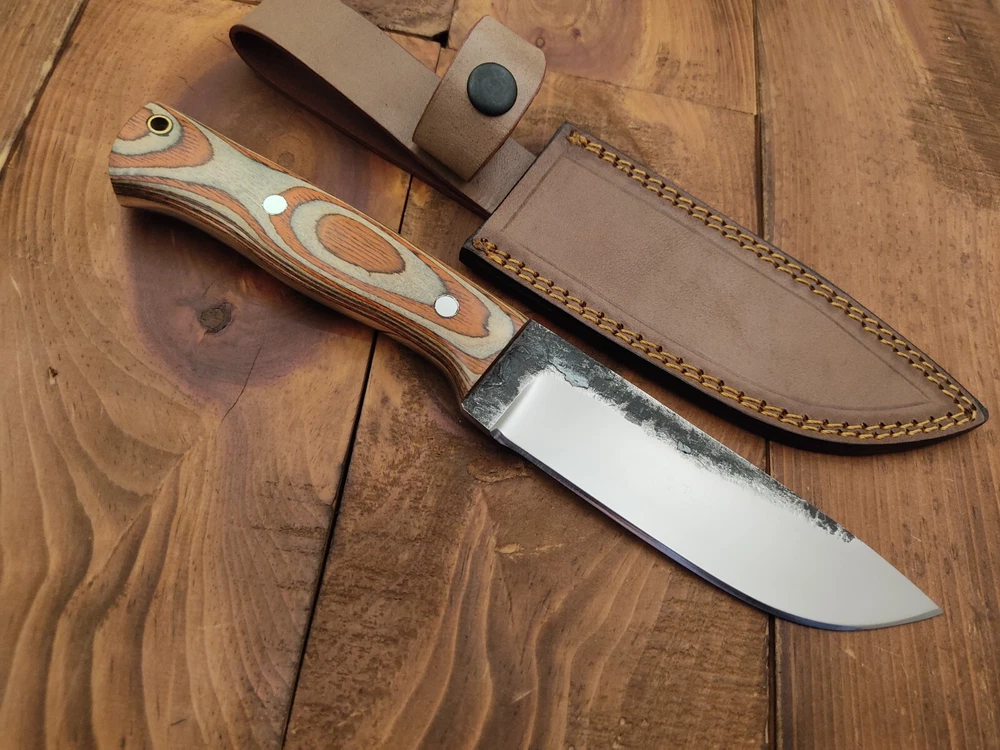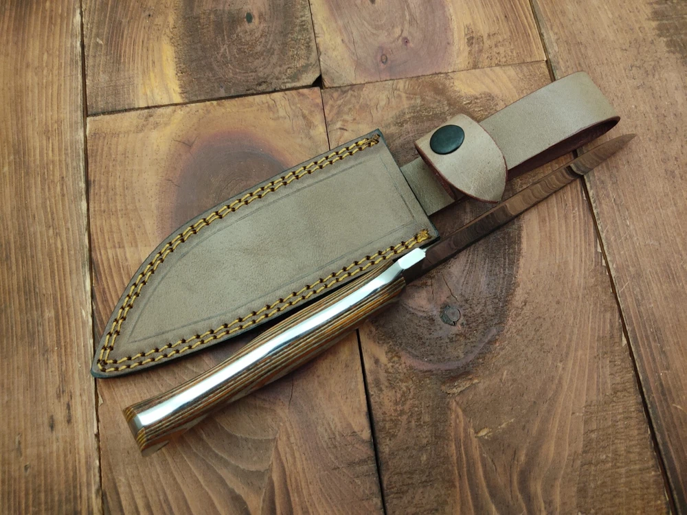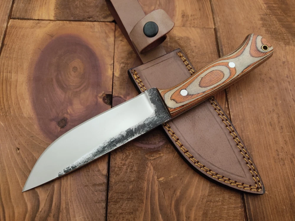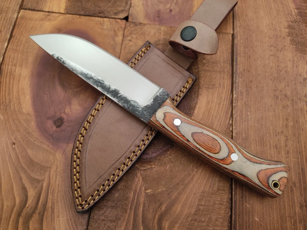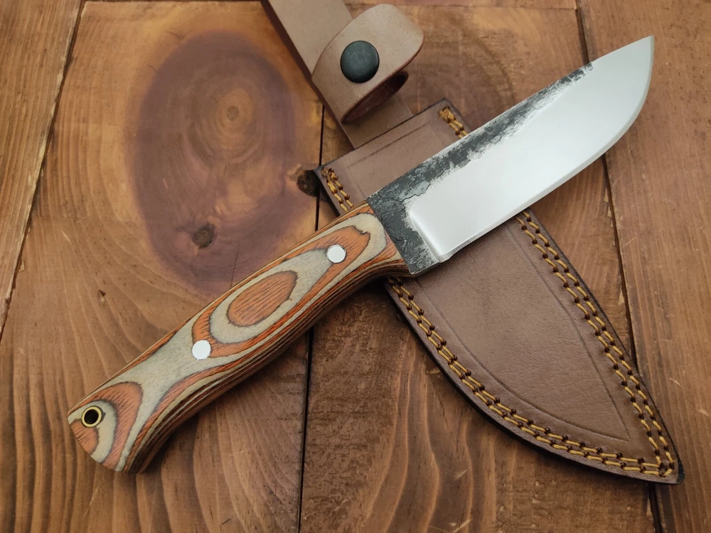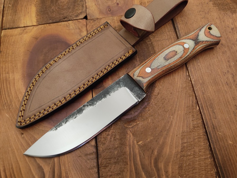 ITEM # HM-138 Fabulous Unique THUNDER STORKE Custom MADE KNIFE Custom Handmade Forged 1095 High Carbon Steel Scandi Grind Bush Craft Camping Survival Outdoor Vintage Hunting Fixed Blade Knife High Carbon Steel holds an edge very well and is optimum for hunting and skinning use as well as tactical and military tasks. The steel is very corrosive and will tarnish and turn the blade black when blood and acidic liquids or chemicals get onto the blade. The blade will still work fine, but will lose the satin color when it was new. Pukka Wood Handle 1095 High Carbon Steel Blade RAZOR SHARP Gorgeous Handle & Blade 10.5" Long | Blade is 5.5" Long | Handle is 5 " 5 mm Thick Blade | Beautiful Worked Blade & Handle WORK OF ART This prestigious unique HUNTING knife was designed and custom made by THUNDERSTORKE . Blade was given excellent heat treatment and Rockwell hardness of the blade 58 to 60 . PAYMENT: As Per Ebay Requirement DISPATCH TIME: 2 to 3 DAYS AFTER RECEIVING YOUR PAYMENT COURIER / SHIPPING: When we print the postage label there is a number that is on the label. This number is called a "Delivery Confirmation Number". The post office is not like UPS or FEDX where they scan the mail at the receipt point and then track it to your door. What the post office does is scan the item when it is delivered (if they choose to) and then you will see that it was delivered. Sometimes they do scan it when you drop it off, but this is rare. If they did scan it at a sorting facility, you see it moving across the USA. But this is very rare. - eBay confuses the buyer with the "tracking number" next to the post offices "delivery confirmation number" when in reality there is not a tracking number. You can ask this at the post office and they will concur. We print labels off the internet using eBay's USPS shipping program and then we drop the packages off at the post office, similar if you were mailing a stamped letter. The post office is supposed to scan it "received" and they do this about 50% of the time. But sometimes they do not scan them. Do not worry, we did mail the item and it is on it's way to you. COMBINE SHIPPING OFFER: We Do Combine Shipping Discount On Multiple Purchase are as Follow. BUYER FEEDBACK AND Detailed Seller Ratings (DSR) SCORES : We spend a lot of time trying to describe our knives 100% perfect in detail, but sometimes we miss things. In the event that we missed something, upon inspection of the item when you receive it, let us know by contacting us via the "Contact Seller" link (next to our user ID profile) and allow us to solve your problem before leaving us low DSR scores (Detailed Seller Ratings) or neutral and negative feedback. - Help us, help ourselves to do better, with our future business on eBay by allowing us to correct our faults and fix the sale with you to a positive. We need to keep our scores high to continue to offer our great knives for sale on eBay. KNIFE CARE and SHEATHS : Leather sheaths pull moisture out of the air and tend to rust knife blades if not stored properly. When you are done using the knife, store it away from the leather sheath and put gun oil, Seal 1, or a similar protectant on the blade and store. Damascus, 1095HC, and D2 can rust and develop stains if not lubricated. AGE RESTRICTION: WE DON'T SELL KNIVES TO ANY ONE WHO IS UNDER AGE . GUARANTEE: If you are not happy with your purchase, we offer you a peace of mind guarantee if you return the product within 7 working days. We will refund your money back immediately ON RECEIVING THE KNIFE BACK IN ORIGINAL CONDITION. DELIBERATE TAMPERING WITH THE PRODUCT OR MISUSE WILL NOT QUALIFY FOR THE REFUND. SHIPPING CHARGES ARE NON-REFUNDABLE. DISCLAIMER: WHEN YOU ARE BIDDING ON THIS KNIFE YOU ARE CONFIRMING US THAT YOUR AGE QUALIFIES FOR THIS PURCHASE AND THIS IS A LEGAL PURCHASE. TAKES NO RESPONSIBILITY FOR ANY ILLEGAL PURCHASE Thank you, - Props in the Photos are NOT INCLUDED. Knife & Sheath ONLY .