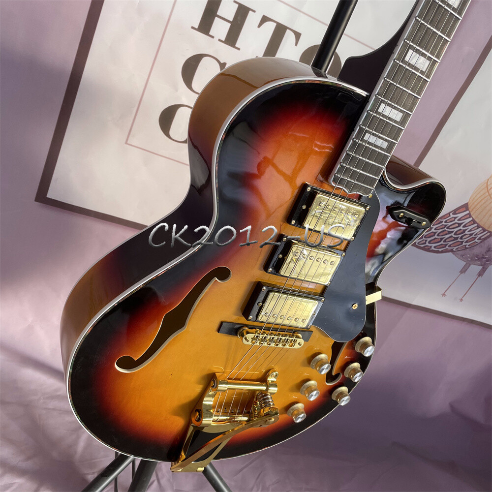 Custom 3 Tone Sunburst ES-5 Switchmaster Electric Guitar Hollow Body HHH Pickup PACKAGE INCLUDED: 1x Electric Guitar -=Note=- -The hard case is for shooting only. All prices shown are without hard case unless stated in the title. You can contact me to purchase and ship it together. -If there is a very small number of unexpected situations after your purchase, please contact us first, and we will definitely solve it for you first. -All emails from you will be answered within 24 hours. If you have not received our message, please resend your email and we will get back to you as soon as possible. - The pictures are from our own warehouse. We can promise it’s a photo source. May there are some differences with the real commodity, on account of many factors, such as light, background, etc. Every guitar we produce is a testament to our craftsmanship, with unique variations in wood grain and color ensuring no two instruments are exactly alike. About Us -Our factory has more than ten years of manufacturing experience in electric guitars, acoustic guitars, and bass guitars. All products are developed using advanced imported equipment and modern technology, fully complying with international standards. It combines superb craftsmanship, scientific product structure and the spirit of many world-renowned brands. Perfect craftsmanship, modern design, comfortable feel, clear sound and excellent playability have always been our goals. We also have the ability to process samples and customize privately, please feel free to leave us a message. ABOUT SHIPPING: -Local transportation from the United States will be shipped to you quickly by Fedex or UPS. -For products shipped from China, we will set a longer processing time to facilitate customized items. -Tracking number provided with every order. INTERNATIONAL CUSTOMERS: - Please Note That International Custom & Duty Charges ( VAT Etc ) Are Not Included In The Item Price Or Shipment Charges. These charges are the buyer's responsibility. -We provide an invoice with a very low value, allowing you to pay little or no customs duties. -Please consult your local customs before purchasing our products.