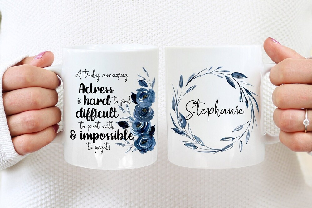 Personalized Actress Gift For Women Appreciation Gift Birthday Gift Graduation Gift Retirement Gift Custom Name Floral Cup Product Details.. This high quality 11oz. ceramic white mug has a premium hard coat that provides crisp and vibrant color reproduction sure to last for years. Perfect for all hot & cold beverages. The highest quality printing possible is used. It will never fade no matter how many times you wash it. Material: 100% Ceramic. Print both sides. Dishwasher and Microwave Safe. High Gloss + Premium White Finish. Printed in the U.S.A. Personalized & Custom. We support personalized and custom mug to add custom, when placing an order, you can add notes to the "order note" in shipping address section. Also you can contact us directly via message. Shipping Info. Ready to ship in 1 to 2 business days, All products are made-to-order and proudly printed in the United States. Shipped by USPS and DHL, You will receive your order in 5-7 days. Replace & Refund. All products are defective during shipping broken, chipped will be replaced free of charge. You are not satisfied with the product, we will refund 100% money to you. If any other issues arise, please do not hesitate to message, we would be more than happy to assist you.