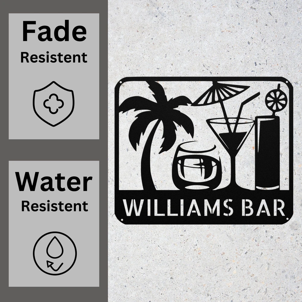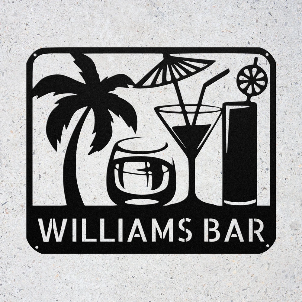 Product Description Custom Beach House Metal Art Tropical Patio or Pool Sign Personalized Bar Signs Bring tropical vibes to your favorite getaway spot with this Custom Beach House Metal Wall Art . Perfect for decorating your beach house, patio, poolside, or tropical retreat, this personalized sign is both stylish and durable. Key Features: Customizable Design: Add your family name, house name, or a special message for a truly unique piece. Premium Craftsmanship: Made from high-quality 16-gauge metal, laser cut for precision, and powder-coated to ensure weather resistance and long-lasting beauty. Versatile Decor: Ideal for beach houses, tropical patios, pool areas, or any space where you want to add a coastal touch. Tropical Theme: Features beach-inspired elements that evoke the relaxation and beauty of the seaside. Thoughtful Gift Idea: A perfect gift for housewarmings, weddings, anniversaries, or any occasion for beach lovers. Transform your space into a coastal paradise with this Personalized Metal Beach House Sign , designed to enhance your decor with charm and elegance. Whether indoors or outdoors, this sign is sure to make waves! Service and Color Choice Our metal signs are designed to be personalized just for you, making them the perfect addition to any space! The default color for our signs is Black , but we also offer a variety of beautiful options including Copper, Gold, White, and Silver . After placing your order, simply contact us with your preferred color choice, and we'll ensure your sign is exactly how you envision it. Let’s create something special together!