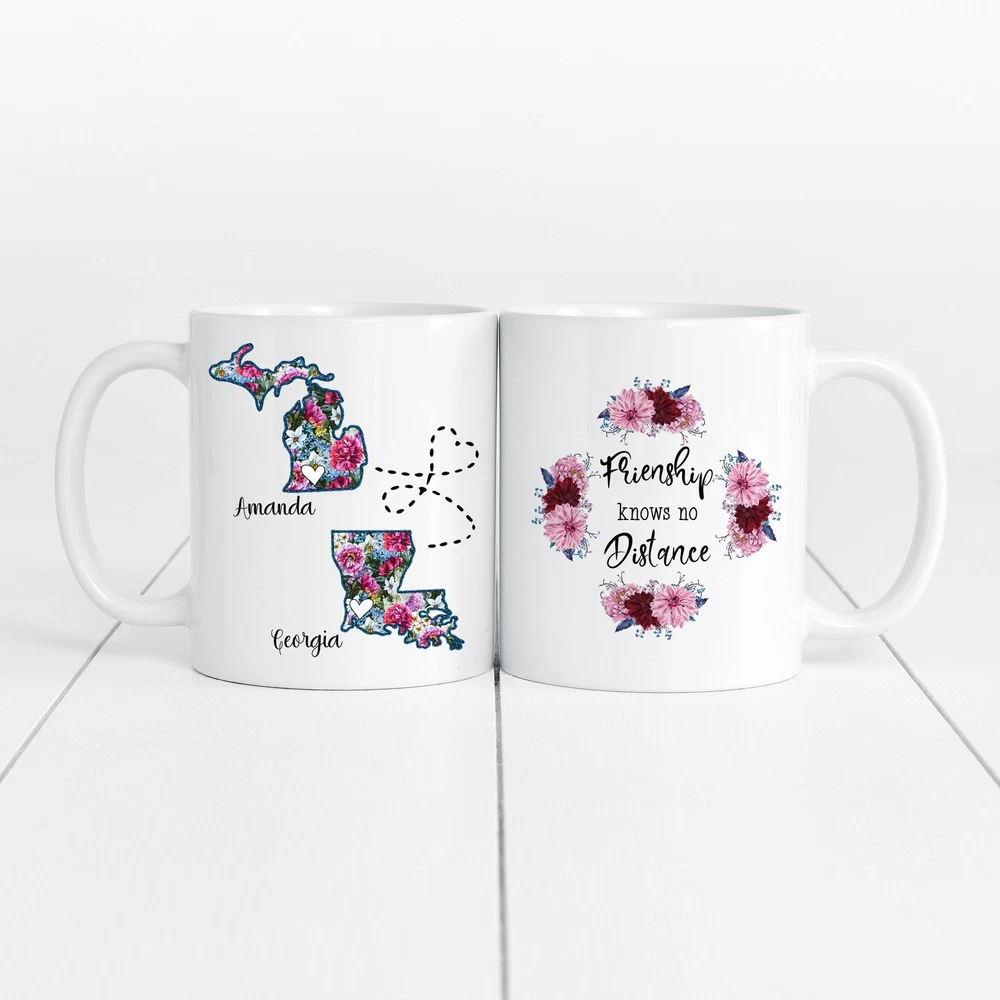 Custom Best Friend Gifts Long Distance Friendship Mug Long Distance Friendship Product Details.. This high quality 11oz. ceramic white mug has a premium hard coat that provides crisp and vibrant color reproduction sure to last for years. Perfect for all hot & cold beverages. The highest quality printing possible is used. It will never fade no matter how many times you wash it. Material: 100% Ceramic. Print both sides. Dishwasher and Microwave Safe. High Gloss + Premium White Finish. Printed in the U.S.A. Personalized & Custom. We support personalized and custom mug to add custom, when placing an order, you can add notes to the "order note" in shipping address section. Also you can contact us directly via message. Shipping Info. Ready to ship in 1 to 2 business days, All products are made-to-order and proudly printed in the United States. Shipped by USPS and DHL, You will receive your order in 5-7 days. Replace & Refund. All products are defective during shipping broken, chipped will be replaced free of charge. You are not satisfied with the product, we will refund 100% money to you. If any other issues arise, please do not hesitate to message, we would be more than happy to assist you.