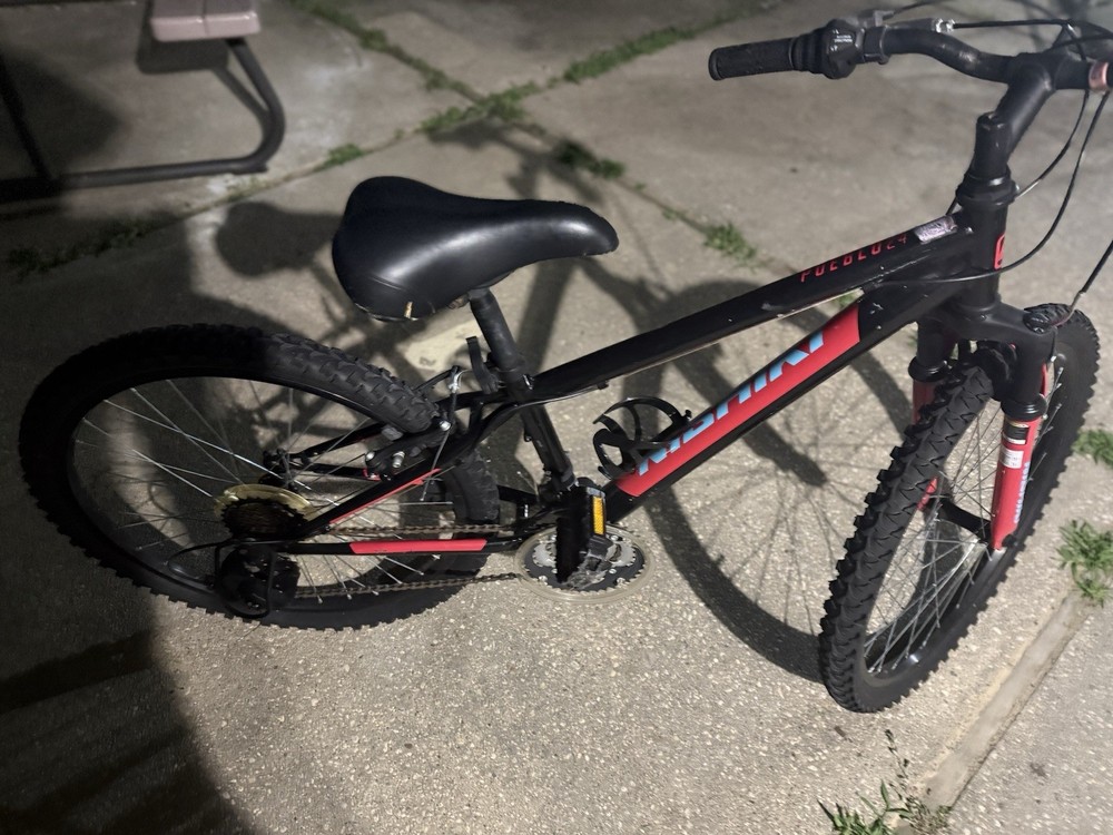 This mountain bike is a beast on any trail! The custom black and red decal gives it a sharp, aggressive look, while the full suspension and hydraulic disc brakes make rides smooth and controlled. The 7-speed setup with thumb shifter is super responsive, and the adjustable seat ensures comfort on long rides. Built tough with an aluminum frame and winter tires, it handles rough terrain effortlessly. Plus, the lifetime warranty gives peace of mind. Perfect for thrill-seekers who want style and performance!