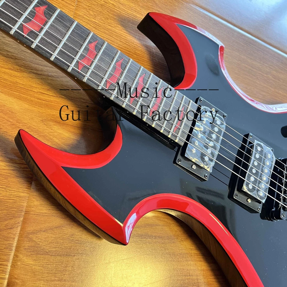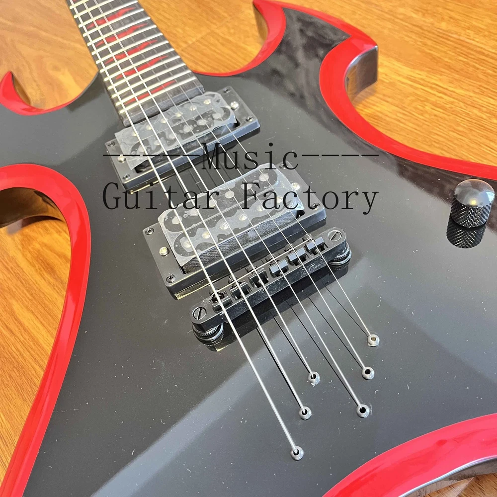 Custom Black Special Shape Electric Guitar String Thru Body 2H Open Pickups