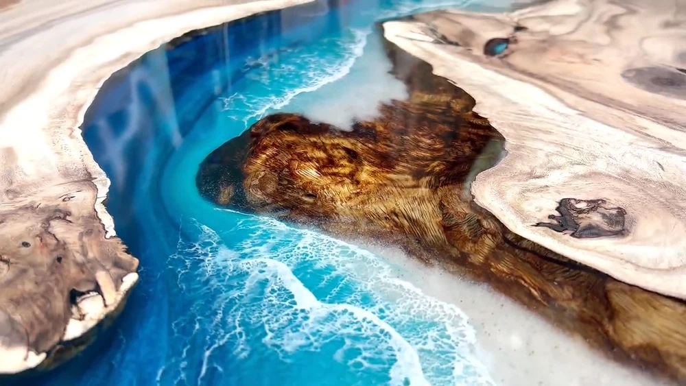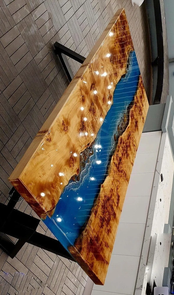 Custom Blue Ocean Epoxy Resin Table, Handmade Dining Room Table, Resin Table Top