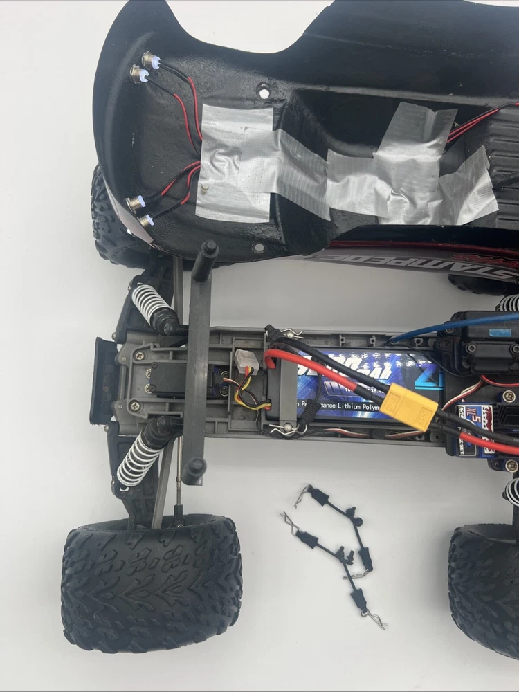 Custom Body Paint Traxxas Stamped 2wd With Lights Lipo Battery Esc XL5. The model remains original, a new case has been made, light has been added, and the case protection has been strengthened. The set is ready, battery and remote control included. Good condition, tested and working.