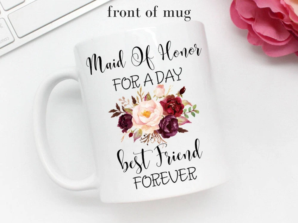 Custom Bridal Party Gift Maid Of Honor Proposal Mug Bride Gift Coffee Mug Product Details.. This high quality 11oz. ceramic white mug has a premium hard coat that provides crisp and vibrant color reproduction sure to last for years. Perfect for all hot & cold beverages. The highest quality printing possible is used. It will never fade no matter how many times you wash it. Material: 100% Ceramic. Print both sides. Dishwasher and Microwave Safe. High Gloss + Premium White Finish. Printed in the U.S.A. Personalized & Custom. We support personalized and custom mug to add custom, when placing an order, you can add notes to the "order note" in shipping address section. Also you can contact us directly via message. Shipping Info. Ready to ship in 1 to 2 business days, All products are made-to-order and proudly printed in the United States. Shipped by USPS and DHL, You will receive your order in 5-7 days. Replace & Refund. All products are defective during shipping broken, chipped will be replaced free of charge. You are not satisfied with the product, we will refund 100% money to you. If any other issues arise, please do not hesitate to message, we would be more than happy to assist you.