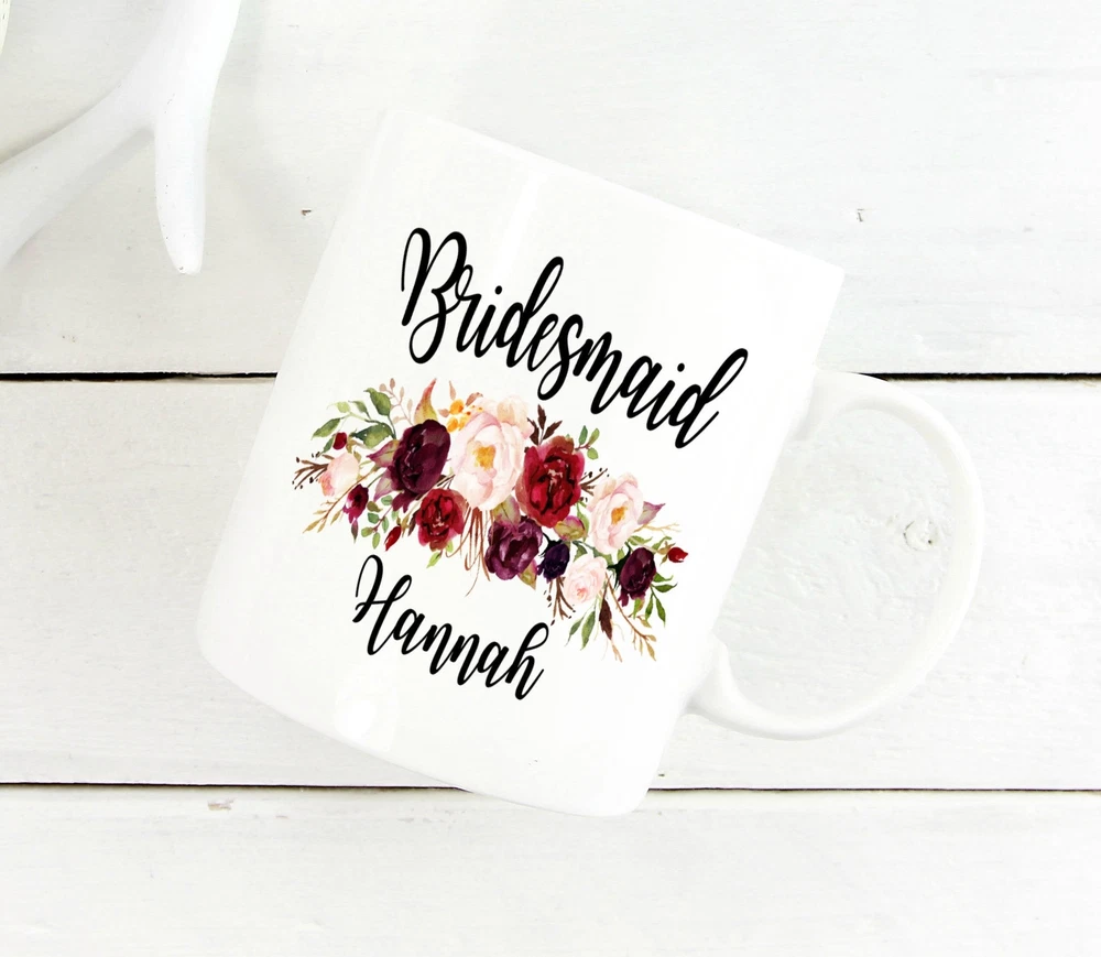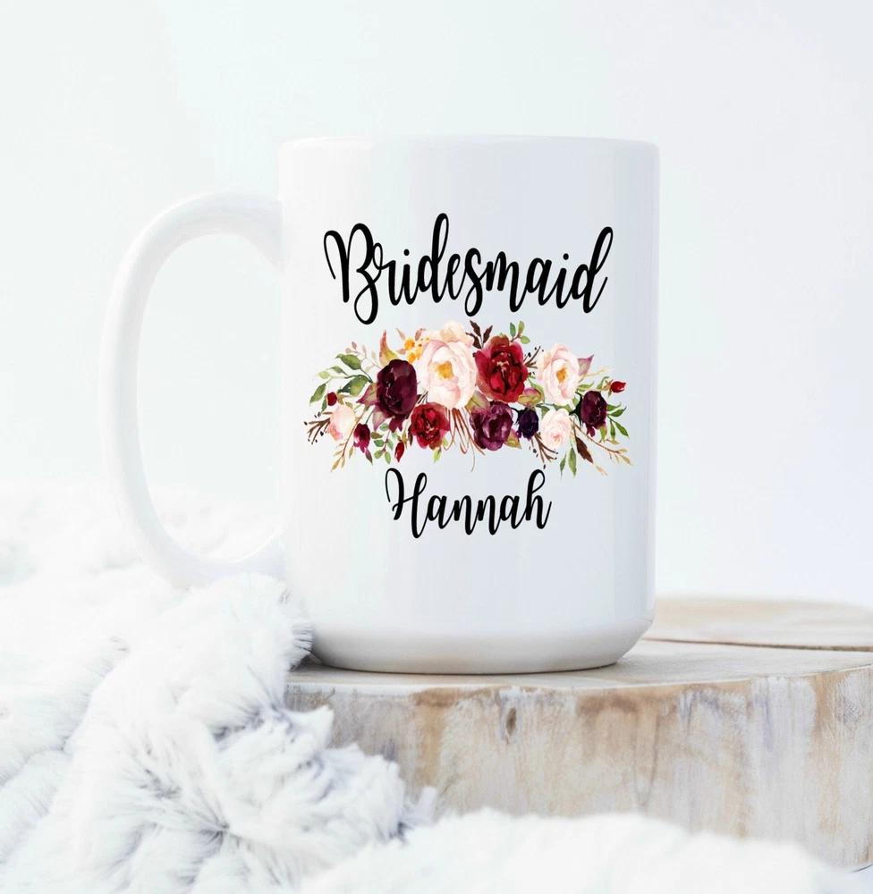 Custom Bridesmaid Coffee Mug Bridesmaid Gift Custom Wedding Favor Bridal Party Product Details.. This high quality 11oz. ceramic white mug has a premium hard coat that provides crisp and vibrant color reproduction sure to last for years. Perfect for all hot & cold beverages. The highest quality printing possible is used. It will never fade no matter how many times you wash it. Material: 100% Ceramic. Print both sides. Dishwasher and Microwave Safe. High Gloss + Premium White Finish. Printed in the U.S.A. Personalized & Custom. We support personalized and custom mug to add custom, when placing an order, you can add notes to the "order note" in shipping address section. Also you can contact us directly via message. Shipping Info. Ready to ship in 1 to 2 business days, All products are made-to-order and proudly printed in the United States. Shipped by USPS and DHL, You will receive your order in 5-7 days. Replace & Refund. All products are defective during shipping broken, chipped will be replaced free of charge. You are not satisfied with the product, we will refund 100% money to you. If any other issues arise, please do not hesitate to message, we would be more than happy to assist you.
