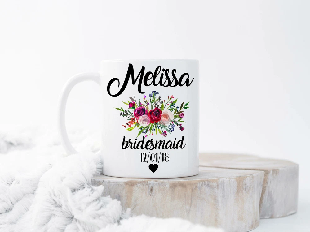 Custom Bridesmaid Mug Personalized Bridesmaid Gift Sister Coffee Gift Bridesmaid Product Details.. This high quality 11oz. ceramic white mug has a premium hard coat that provides crisp and vibrant color reproduction sure to last for years. Perfect for all hot & cold beverages. The highest quality printing possible is used. It will never fade no matter how many times you wash it. Material: 100% Ceramic. Print both sides. Dishwasher and Microwave Safe. High Gloss + Premium White Finish. Printed in the U.S.A. Personalized & Custom. We support personalized and custom mug to add custom, when placing an order, you can add notes to the "order note" in shipping address section. Also you can contact us directly via message. Shipping Info. Ready to ship in 1 to 2 business days, All products are made-to-order and proudly printed in the United States. Shipped by USPS and DHL, You will receive your order in 5-7 days. Replace & Refund. All products are defective during shipping broken, chipped will be replaced free of charge. You are not satisfied with the product, we will refund 100% money to you. If any other issues arise, please do not hesitate to message, we would be more than happy to assist you.