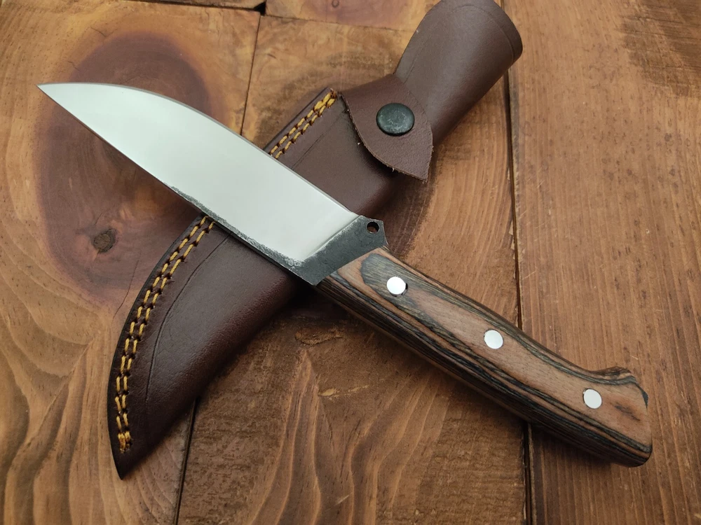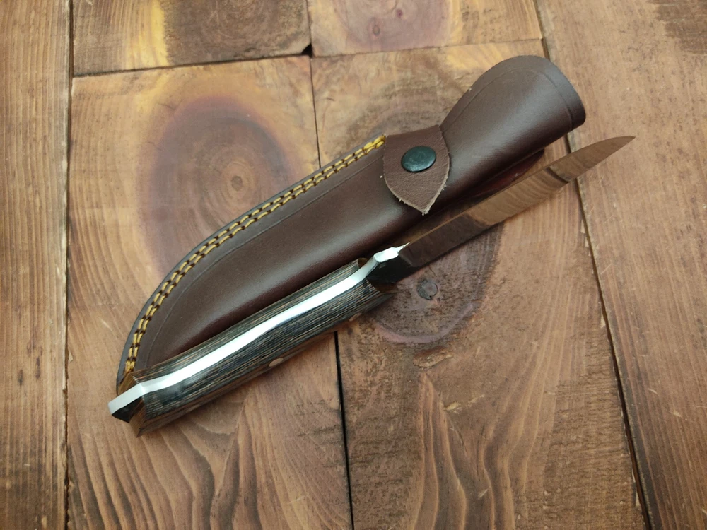 ITEM # HM-155 Fabulous Unique THUNDER STORKE Custom MADE KNIFE Custom Handmade Forged 1095 High Carbon Steel Camping Survival Outdoor Vintage Hunting Fixed Blade Knife High Carbon Steel holds an edge very well and is optimum for hunting and skinning use as well as tactical and military tasks. The steel is very corrosive and will tarnish and turn the blade black when blood and acidic liquids or chemicals get onto the blade. The blade will still work fine, but will lose the satin color when it was new. Pukka Wood Handle 1095 High Carbon Steel Blade RAZOR SHARP Gorgeous Handle & Blade 10.2" Long | Blade is 5.1" Long | Handle is 5.1" 4 mm Thick Blade | Beautiful Worked Blade & Handle WORK OF ART This prestigious unique HUNTING knife was designed and custom made by THUNDERSTORKE . Blade was given excellent heat treatment and Rockwell hardness of the blade 58 to 60 . PAYMENT: As Per Ebay Requirement DISPATCH TIME: 2 to 3 DAYS AFTER RECEIVING YOUR PAYMENT COURIER / SHIPPING: When we print the postage label there is a number that is on the label. This number is called a "Delivery Confirmation Number". The post office is not like UPS or FEDX where they scan the mail at the receipt point and then track it to your door. What the post office does is scan the item when it is delivered (if they choose to) and then you will see that it was delivered. Sometimes they do scan it when you drop it off, but this is rare. If they did scan it at a sorting facility, you see it moving across the USA. But this is very rare. - eBay confuses the buyer with the "tracking number" next to the post offices "delivery confirmation number" when in reality there is not a tracking number. You can ask this at the post office and they will concur. We print labels off the internet using eBay's USPS shipping program and then we drop the packages off at the post office, similar if you were mailing a stamped letter. The post office is supposed to scan it "received" and they do this about 50% of the time. But sometimes they do not scan them. Do not worry, we did mail the item and it is on it's way to you. COMBINE SHIPPING OFFER: We Do Combine Shipping Discount On Multiple Purchase are as Follow. BUYER FEEDBACK AND Detailed Seller Ratings (DSR) SCORES : We spend a lot of time trying to describe our knives 100% perfect in detail, but sometimes we miss things. In the event that we missed something, upon inspection of the item when you receive it, let us know by contacting us via the "Contact Seller" link (next to our user ID profile) and allow us to solve your problem before leaving us low DSR scores (Detailed Seller Ratings) or neutral and negative feedback. - Help us, help ourselves to do better, with our future business on eBay by allowing us to correct our faults and fix the sale with you to a positive. We need to keep our scores high to continue to offer our great knives for sale on eBay. KNIFE CARE and SHEATHS : Leather sheaths pull moisture out of the air and tend to rust knife blades if not stored properly. When you are done using the knife, store it away from the leather sheath and put gun oil, Seal 1, or a similar protectant on the blade and store. Damascus, 1095HC, and D2 can rust and develop stains if not lubricated. AGE RESTRICTION: WE DON'T SELL KNIVES TO ANY ONE WHO IS UNDER AGE . GUARANTEE: If you are not happy with your purchase, we offer you a peace of mind guarantee if you return the product within 7 working days. We will refund your money back immediately ON RECEIVING THE KNIFE BACK IN ORIGINAL CONDITION. DELIBERATE TAMPERING WITH THE PRODUCT OR MISUSE WILL NOT QUALIFY FOR THE REFUND. SHIPPING CHARGES ARE NON-REFUNDABLE. DISCLAIMER: WHEN YOU ARE BIDDING ON THIS KNIFE YOU ARE CONFIRMING US THAT YOUR AGE QUALIFIES FOR THIS PURCHASE AND THIS IS A LEGAL PURCHASE. TAKES NO RESPONSIBILITY FOR ANY ILLEGAL PURCHASE Thank you, - Props in the Photos are NOT INCLUDED. Knife & Sheath ONLY .