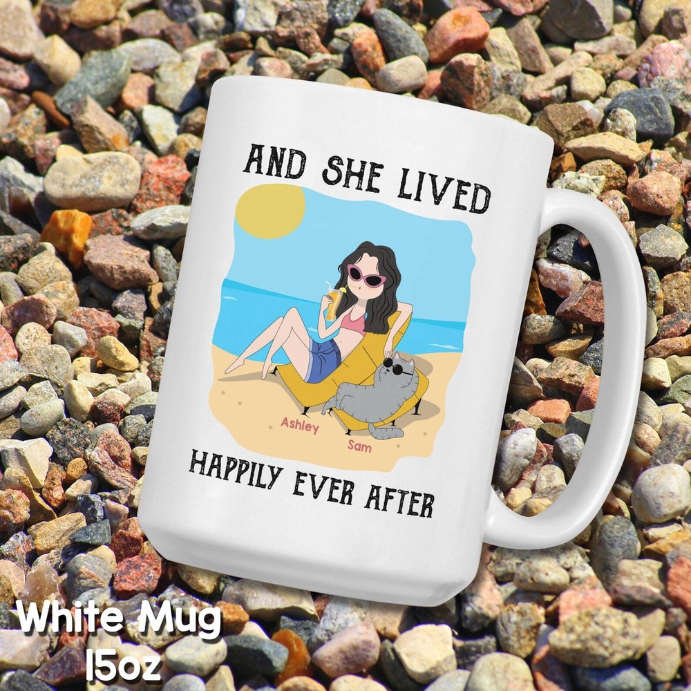 Personalized Cat Mug And She Lived Happily Ever After Mug Custom Cat Mugs Cat At Beach Mug Custom Gifts For Her Beach Lover Gift Product Details.. This high quality 11oz. ceramic white mug has a premium hard coat that provides crisp and vibrant color reproduction sure to last for years. Perfect for all hot & cold beverages. The highest quality printing possible is used. It will never fade no matter how many times you wash it. Material: 100% Ceramic. Print both sides. Dishwasher and Microwave Safe. High Gloss + Premium White Finish. Printed in the U.S.A. Personalized & Custom. We support personalized and custom mug to add custom, when placing an order, you can add notes to the "order note" in shipping address section. Also you can contact us directly via message. Shipping Info. Ready to ship in 1 to 2 business days, All products are made-to-order and proudly printed in the United States. Shipped by USPS and DHL, You will receive your order in 5-7 days. Replace & Refund. All products are defective during shipping broken, chipped will be replaced free of charge. You are not satisfied with the product, we will refund 100% money to you. If any other issues arise, please do not hesitate to message, we would be more than happy to assist you.