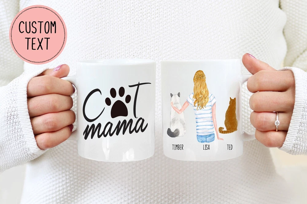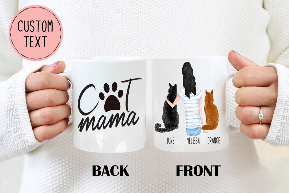 Custom Cat Mom Mug Cat Mother Mug Cat Mom Gift Cat Lover Gift Cat Mama Mug Cat Product Details.. This high quality 11oz. ceramic white mug has a premium hard coat that provides crisp and vibrant color reproduction sure to last for years. Perfect for all hot & cold beverages. The highest quality printing possible is used. It will never fade no matter how many times you wash it. Material: 100% Ceramic. Print both sides. Dishwasher and Microwave Safe. High Gloss + Premium White Finish. Printed in the U.S.A. Personalized & Custom. We support personalized and custom mug to add custom, when placing an order, you can add notes to the "order note" in shipping address section. Also you can contact us directly via message. Shipping Info. Ready to ship in 1 to 2 business days, All products are made-to-order and proudly printed in the United States. Shipped by USPS and DHL, You will receive your order in 5-7 days. Replace & Refund. All products are defective during shipping broken, chipped will be replaced free of charge. You are not satisfied with the product, we will refund 100% money to you. If any other issues arise, please do not hesitate to message, we would be more than happy to assist you.