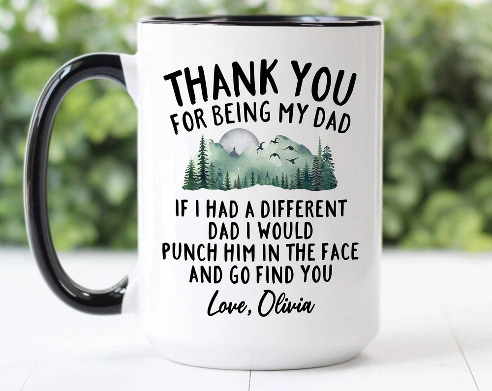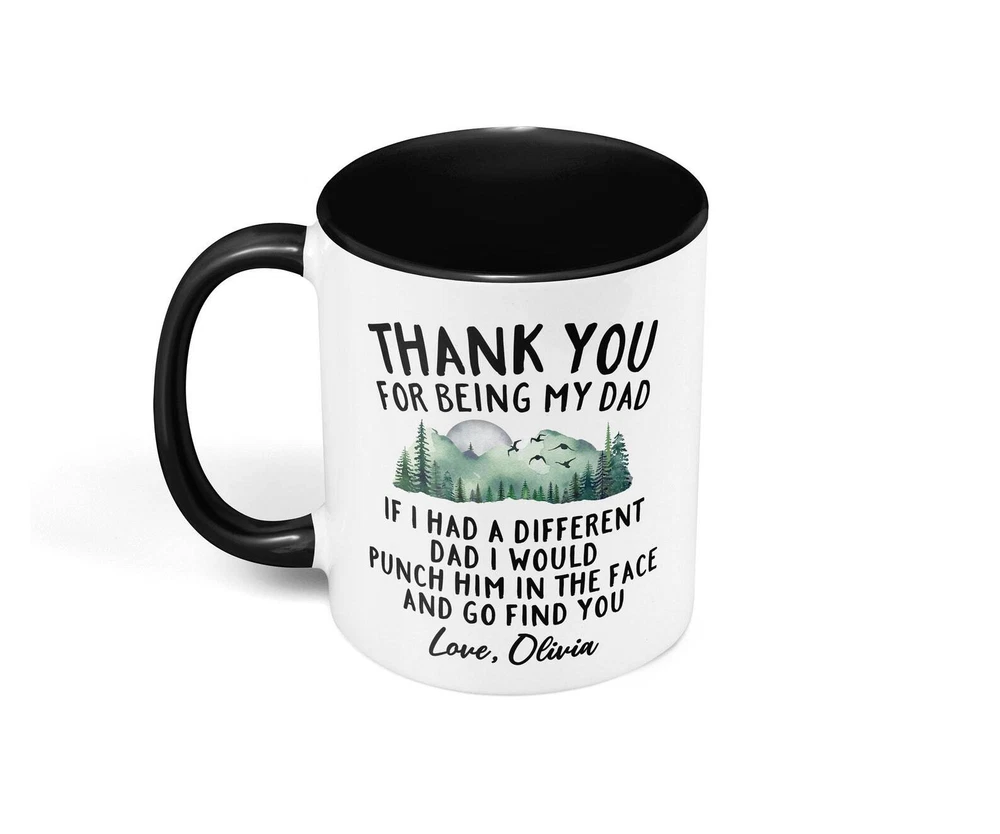 Custom Coffee Mug Thank You For Being My Dad I Would Punch Him In The Face Mug Product Details.. This high quality 11oz. ceramic white mug has a premium hard coat that provides crisp and vibrant color reproduction sure to last for years. Perfect for all hot & cold beverages. The highest quality printing possible is used. It will never fade no matter how many times you wash it. Material: 100% Ceramic. Print both sides. Dishwasher and Microwave Safe. High Gloss + Premium White Finish. Printed in the U.S.A. Personalized & Custom. We support personalized and custom mug to add custom, when placing an order, you can add notes to the "order note" in shipping address section. Also you can contact us directly via message. Shipping Info. Ready to ship in 1 to 2 business days, All products are made-to-order and proudly printed in the United States. Shipped by USPS and DHL, You will receive your order in 5-7 days. Replace & Refund. All products are defective during shipping broken, chipped will be replaced free of charge. You are not satisfied with the product, we will refund 100% money to you. If any other issues arise, please do not hesitate to message, we would be more than happy to assist you.