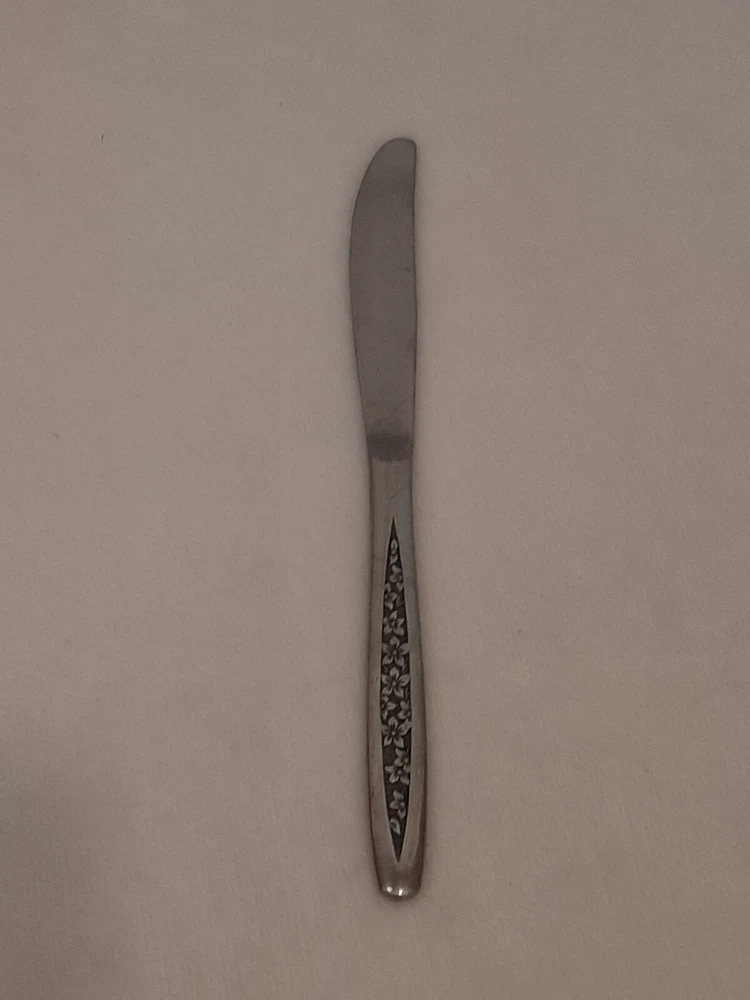 Custom Craft Stainless Dinner Knife Japan Flatware Floral Petal Lane Replacement In good pre-owned condition may show signs of wear from use/handling/storage/display. Please view all pics for condition/details/flaws/issues. SOLD AS IS There is/maybe marks/spots/dirt/debris/rust please see photos 1-9, there is/maybe paint loss/sticker loss please see photos 1-9, there is lite discoloration please see photos 1-9, there are surface scratches to item please see photos 1-9, please see all photos for condition/issues/details.