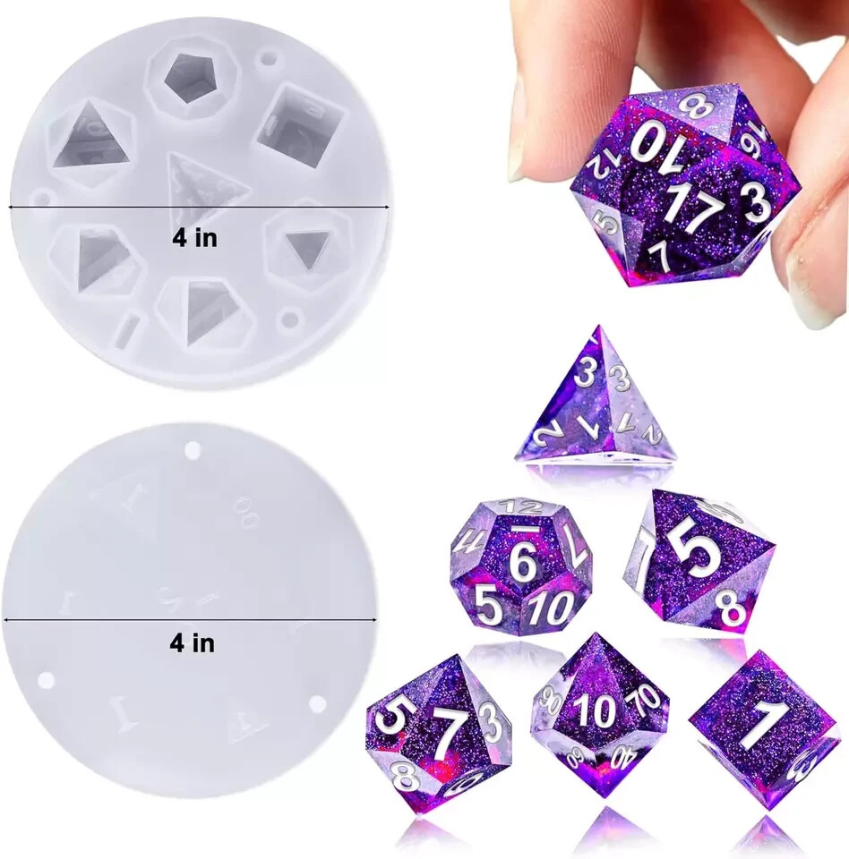 Juome Dice Resin Molds Silicone, DND Dice Silicone Molds for Epoxy Resin Casting with 7 Standard Stereoscopic Dice Cavities, Resin Mold for DIY Dices Making, Table Board Game Dice Lovers Gift Description Item model number GA-305 Color Dice Product Dimensions 4.33 x 4.33 x 1.18 inches Item Weight 2.46 ounces Dice molds for resin - Our polyhedral DND dice resin mold set design with 7 stereoscopic dice cavities: D4, D6, D8, D10 (00-90), D10 (0-9), D12, and D20. Each resin molds silicone with clear numbers, perfect for DIY dices making, bring a better experience to your game Easy to use - Resin dice mold is upgraded one-piece resin molds, easy and convenience to use, no more worry about missing parts. Firstly, pour resin and make the bubble out with stick, then connect 4 interconnections between the lid and the dice mold when covering the lid, put something heavy on lid to squeeze out excess resin, finally, coloring numbers on dice after de-mold DIY unique craft - During DIY dice mold, you can add different fillers like glitter, dried flowers, mica powder or any element you like as decoration. The finished dice craft has shiny glossy surface without the hassle of extra polishing. Great handmade gift for dice lovers High quality - DND dice mold are made of high quality silicone material, with high flexibility and tear resistance, durable and reusable, easy to demold and clean Customer Service - Any questions with our epoxy resin molds silicone, please feel free to contact us via email, we will do our best to help you solve the problem