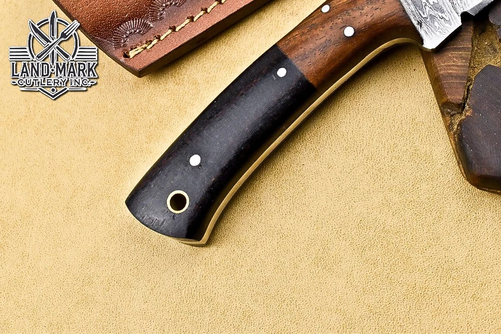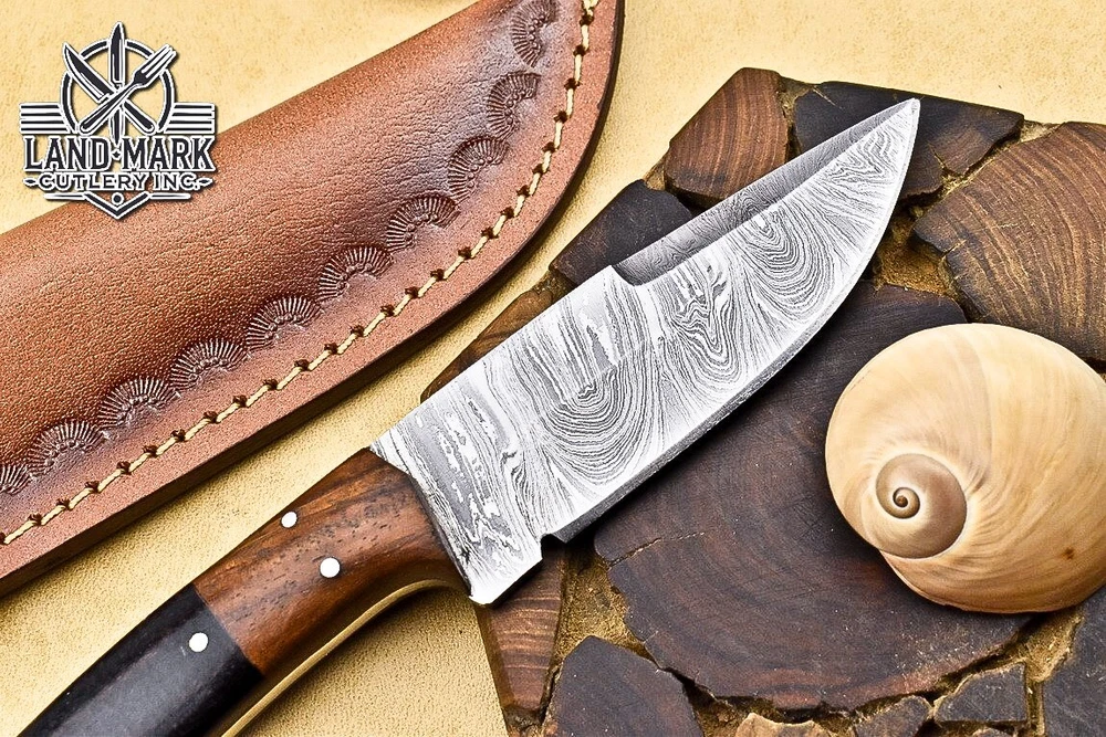 Custom Damascus Hunting Skinner Knife with Wood Handle