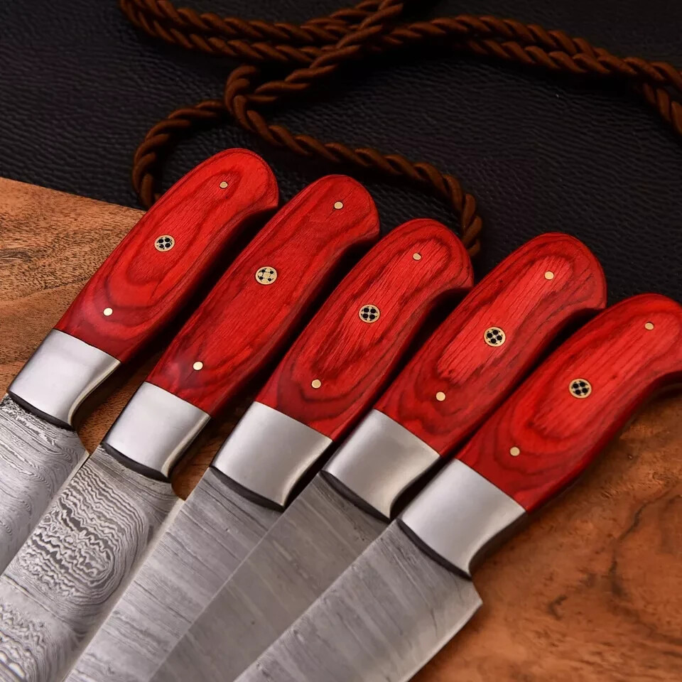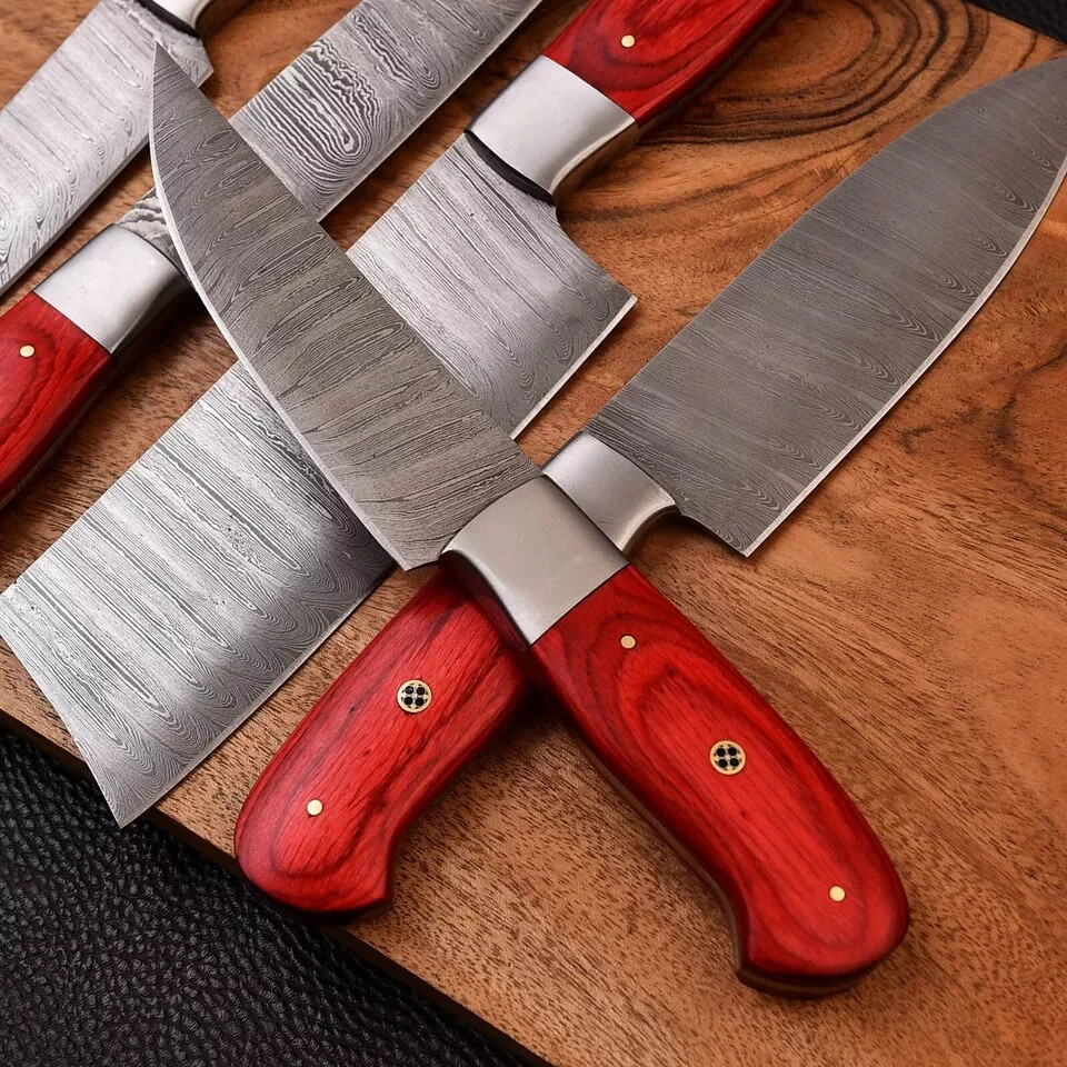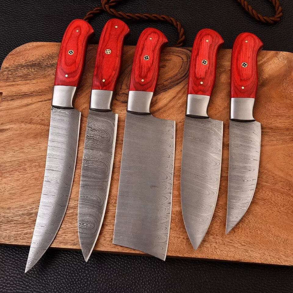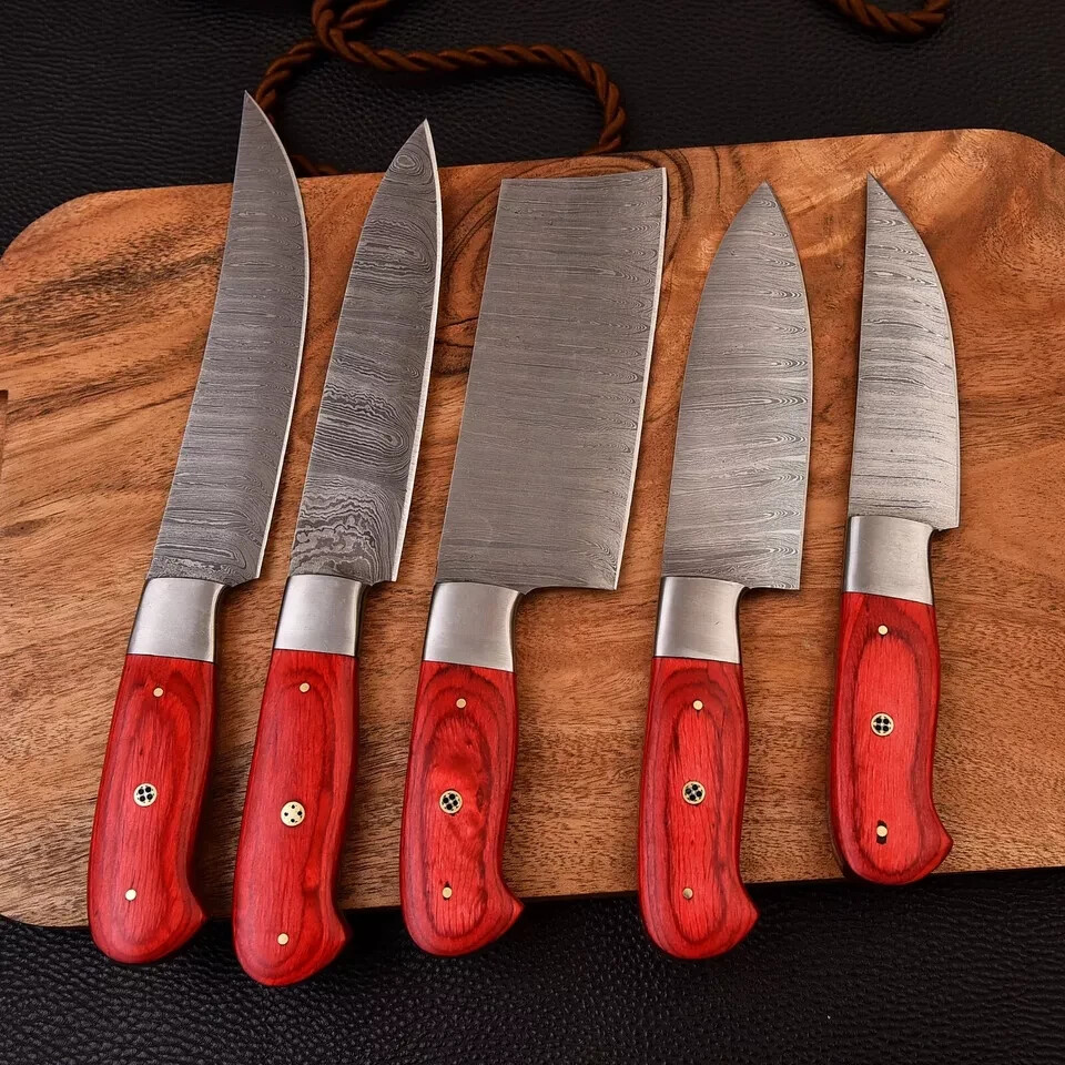 Custom Damascus Steel Chef Knives Set - 5-Piece Handcrafted Kitchen Blades