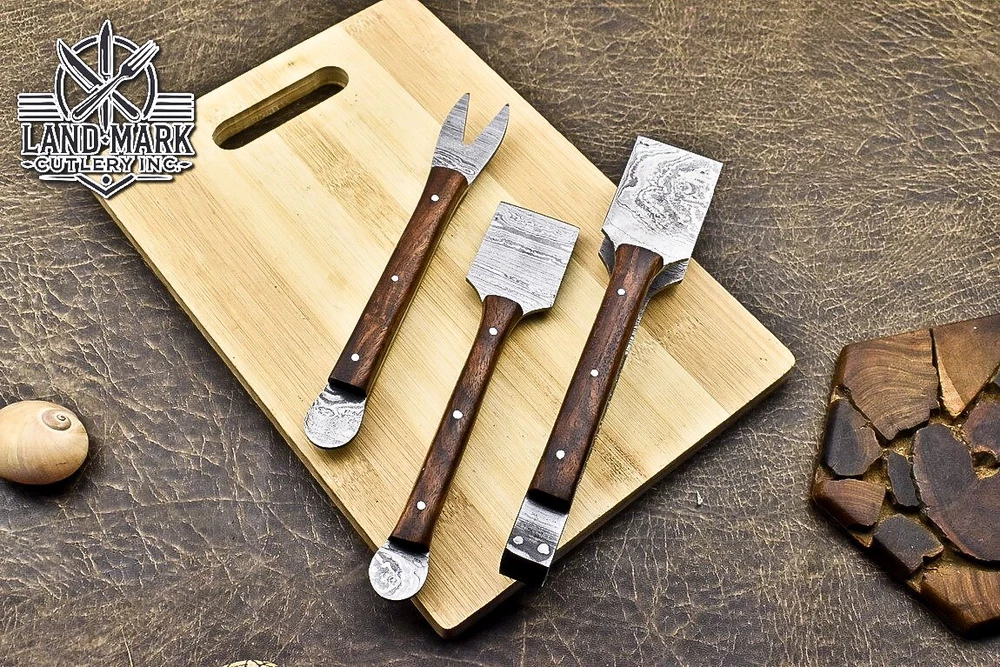 This handmade Damascus steel hunting BBQ set is stunning! The rosewood handle feels smooth and sturdy, while the 12-inch blade stays razor-sharp thanks to its 58-60 HRC hardness. Forged from 4340 and 1080 steel, the intricate Damascus pattern makes it a showstopper. Perfect for outdoorsmen and BBQ lovers who appreciate fine craftsmanship. The shipping discount for multiple purchases is a nice bonus! A true blend of beauty and function.