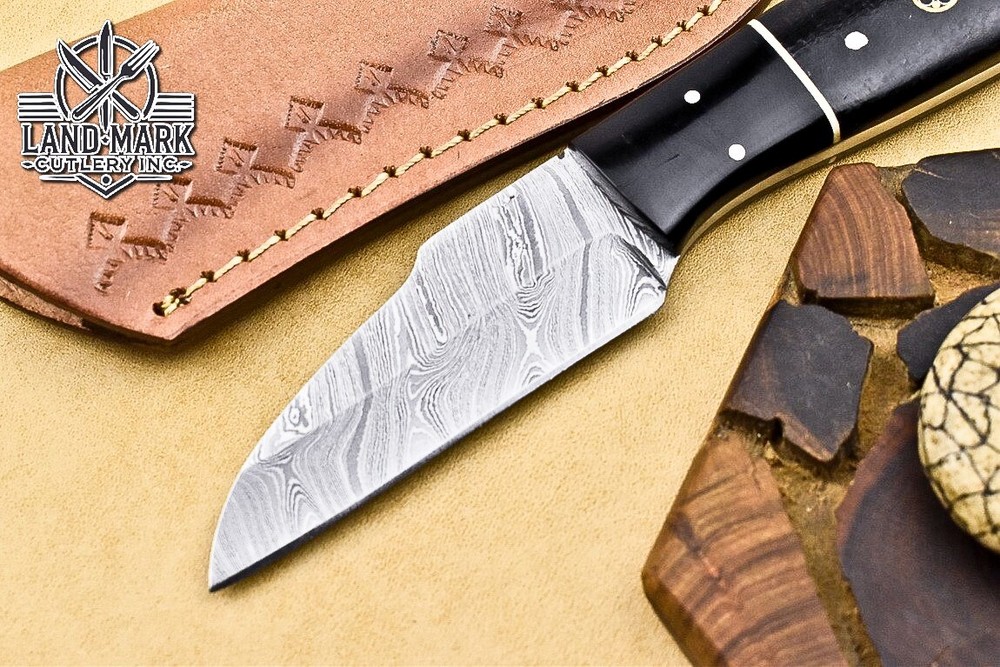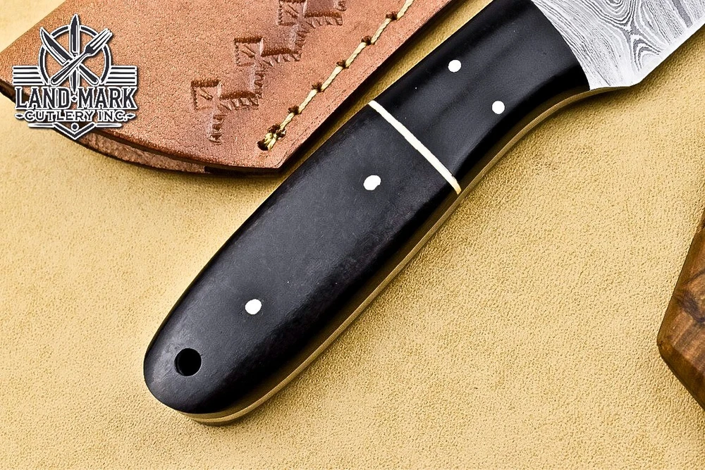 Custom Damascus Steel Hunting Skinner Knife with Black Handle
