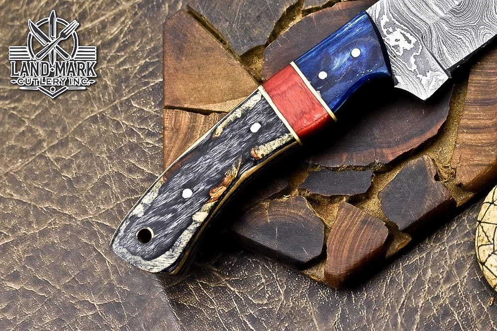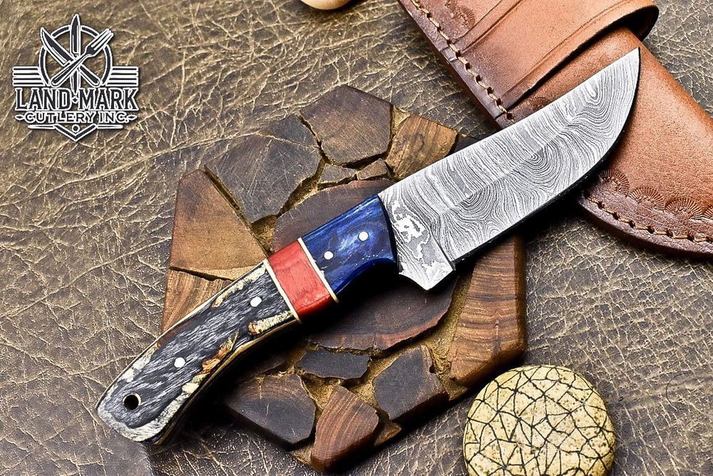 Custom Hand Made DAMASCUS STEEL HUNTING KNIFE WITH PAKKA WOOD HANDLE We offer a shipping discount for More then one purchased . And discount will be apply on combine invoice, Discount will not apply on separate payment. ITEM DETAILS OVER ALL LENGTH 8.0 inches long (Approx) HANDLE LENGTH 4.0 inches long (Approx) BLADE LENGTH 4.0 inches long (Approx) BLADE HARDNESS 58-60 HRC Which Holds The Sharp Edge For Long Time. HANDLE HARD WOOD COVER LEATHER SHEATH This Awesome custom made KNIFE has a nice hand forged with the combination of 4340 & 1080 steel. HOW OUR DAMASCUS IS MADE: All our Damascus is real and not just an acid etch. Damascus is a mixture of 1080HC and 4340 nickel carbon. You heat them up together and then fold the bar over and over to get the desired layers, ours are 396 layers. Then you burn the blade in acid, and it turns the nickel satin color and the high carbon turns blackish gray. This is how the layers are exposed to show the layers of the new steel created coined "Damascus". All Damascus is acid etched to show the layers. If you high polish the metal it will be shinny satin like all steels. Only after you burn the sides of the blade with acid do you see the layers of the two steels. Makes sense? After we make our knives we high polish the handles and put an edge on the blade. The high polishing buffs off the acid burned layer of the handle, and the blade edge is sharpened and the acid burned edge becomes satin. You can re-burn the tang of the blade near the handles and the edge of the blade and it will show the layers once more. All our knives are hand made, durable and unique ***** YOU WILL RECEIVED THE SAME KNIFE Qality Standards Our Damascus blades are made from high quality non-stainless steels which rival or exceed any Damascus blade made from the 10 series with 4340. Our Damascus combination has taken years to perfect and has been tested under a variety of application which will offer professional performance in categories of toughness, strength (lateral stress) and edge honing and holding ability. In a 5 spot Rockwell test our blades will average near or close to 58 which offers a perfect balances between its toughness and strength.Our blades due to carbon content need to be regularly treated with wax and/or 3 in 1 oil to maintain its superior quality. Questions if you have any question feel free to send us message we aim to answer all questions within 24 hours Feedback If you are not satisfied with our service please contact us before leaving any negative or natural feedback. We will resolve all issues as quickly as possible. Disclaimer We are not responsible for any injuries associated with the use of our tools. Our products are intended for legal use only by responsible buyers. Therefore, we will not sell our products to anyone under the age of 18. Before bidding please check your country laws as some countries Custom don't allow this. If your purchase is held by Custom Authorities in your country/State we will not be responsible for that and no refund will be issued Shipping We offer a 20% shipping discount for More then one purchased . And discount will be apply on combine invoice, Discount will not apply on separate payment We ship within 24 hours after receiving complete payment but this can be delayed due to week ends or Governments and Religious Festivals . . This is beyond our control and we apologize for this inconvenience. Precautions Our Tools are very sharp so open and use them very carefully We are not responsible for any injuries associated with the use of our tools Tips to Care knife 1. NEVER STORE YOUR KNIFE FOR LONG TIME IN LEATHER SHEATH. 2. LEATHER CAN ABSORB WATER, WHICH WILL RUST THE KNIFE. 3. ALWAYS CLEAN THE BLADE AFTER USING WITH OIL OR WAX