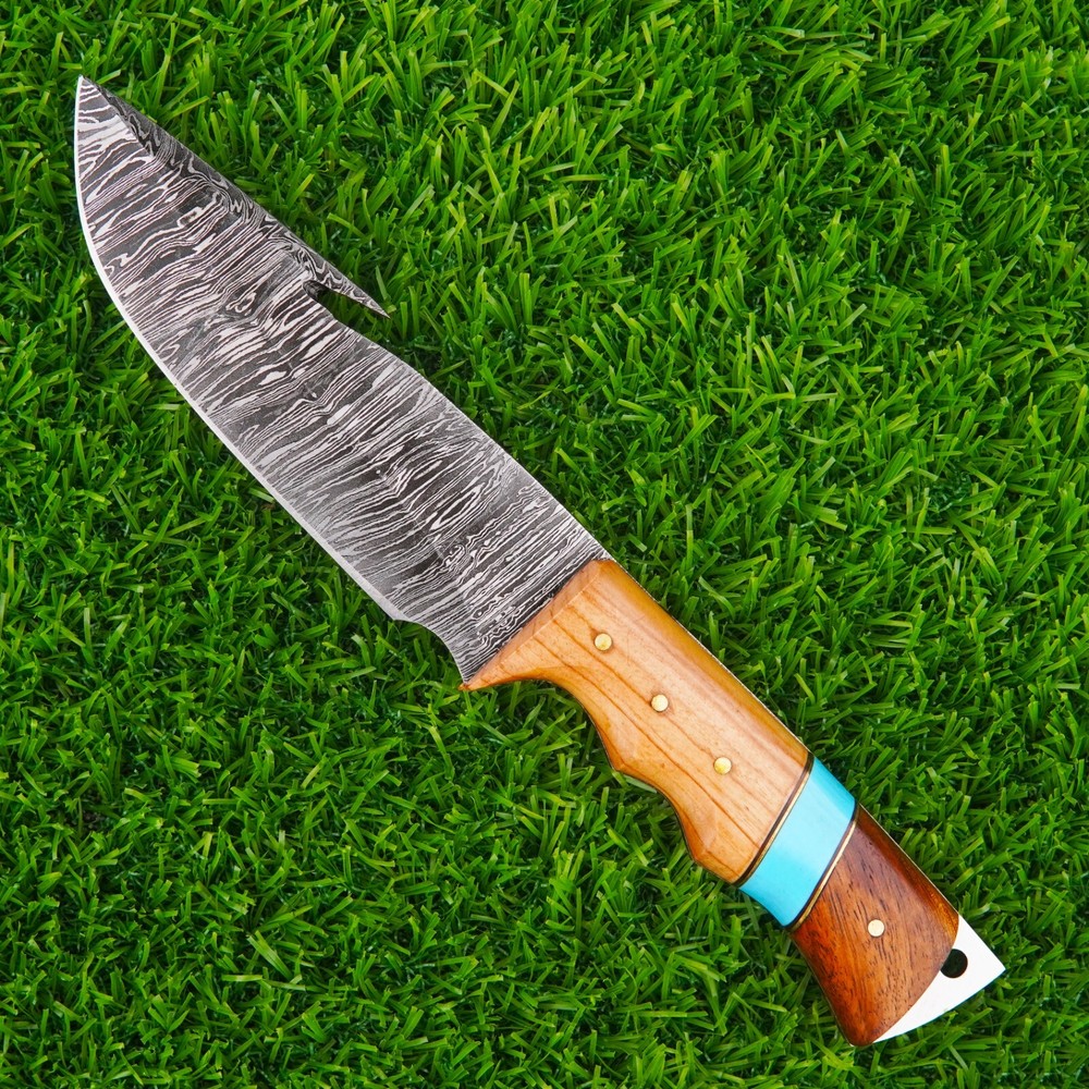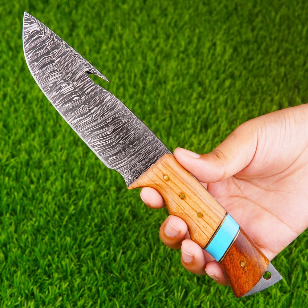 Custom Fixed Blade Tactical Bowie Hunting Knife Damascus Steel w/Sheath Looking For An Unusual Hand Crafted Hunting Knife? Here It Is! A Compact Outdoors Hunting Knife, Classic Bowie Hunting Knife Custom Hand Forged High Quality Damascus Steel Hunting Knife , Easy-To-Carry, Beautiful Hunting Knife, And Made Of Powerful Damascus Steel. We Take Great Pride In Creating By Hand, Our Hunting Knife Crafted With Damascus Steel Wooden Handle The Highest Quality Materials. Our Bowie Hunting Knife Is Also Designed To Be Used As An All-Around Tool For Camping, Hunting, Fishing, And Other Outdoor Activities. Crafted With Precision And Designed For Durability, Best Hunting Knife. This Hunting Knife Is The Perfect Companion For Any Hunting, Camping, Or Survival Adventure. Here's Why You'll Love It: Premium Quality Innovative, Traditional, Precise Ergonomic Handle, With Classic Look Easy To Clean, Very Hygienic Custom Handmade Stainless Steel Blade User-friendliness Best Gift For Your Love Once & Hunter Friends. High Quality Hunting Knife Which Can Be Used For Camping. Damascus Steel Hunting Knife, Wood Handle, With Leather Sheath. PRODUCT SPECIFICATION Overall Length: 8.5 (Inches) Handmade Leather Sheath Included High Quality Materials for Durability Fully Handmade Item, No Pre-Bought Parts RESTRICTION You Must Be Over 18 Years Of Age To Purchase These Products, The Buyer is Fully Responsible For Local Laws And Regulations Concerning the Purchase And Possession Of Knives, Swords, And Other Cutlery Tools, By Making A Purchase You Are Confirming Our Age Policy. HAVE A SAFE SHOPPING PLEASE LEAVE A HONEST REVIEW