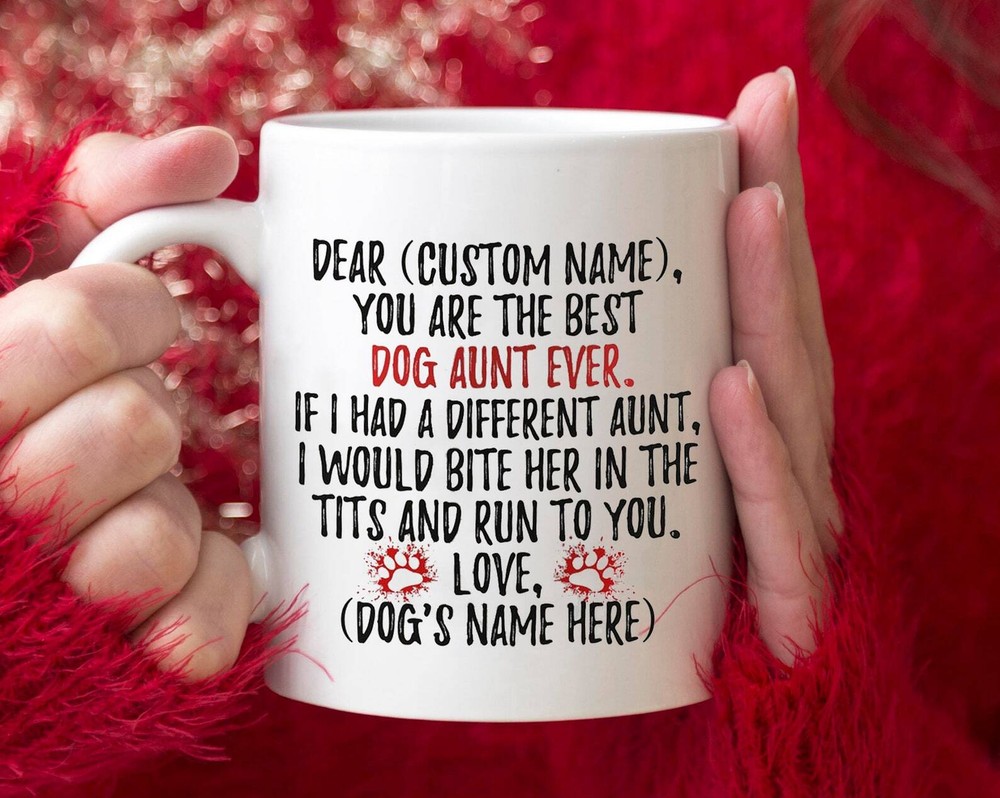 Personalized Dog Auntie Gift Auntie Mug Gift Dog Aunt Mug Gift For Aunt Funny Product Details.. This high quality 11oz. ceramic white mug has a premium hard coat that provides crisp and vibrant color reproduction sure to last for years. Perfect for all hot & cold beverages. The highest quality printing possible is used. It will never fade no matter how many times you wash it. Material: 100% Ceramic. Print both sides. Dishwasher and Microwave Safe. High Gloss + Premium White Finish. Printed in the U.S.A. Personalized & Custom. We support personalized and custom mug to add custom, when placing an order, you can add notes to the "order note" in shipping address section. Also you can contact us directly via message. Shipping Info. Ready to ship in 1 to 2 business days, All products are made-to-order and proudly printed in the United States. Shipped by USPS and DHL, You will receive your order in 5-7 days. Replace & Refund. All products are defective during shipping broken, chipped will be replaced free of charge. You are not satisfied with the product, we will refund 100% money to you. If any other issues arise, please do not hesitate to message, we would be more than happy to assist you.