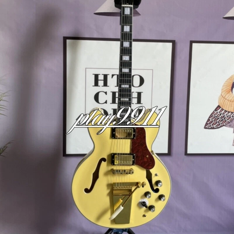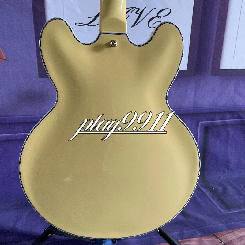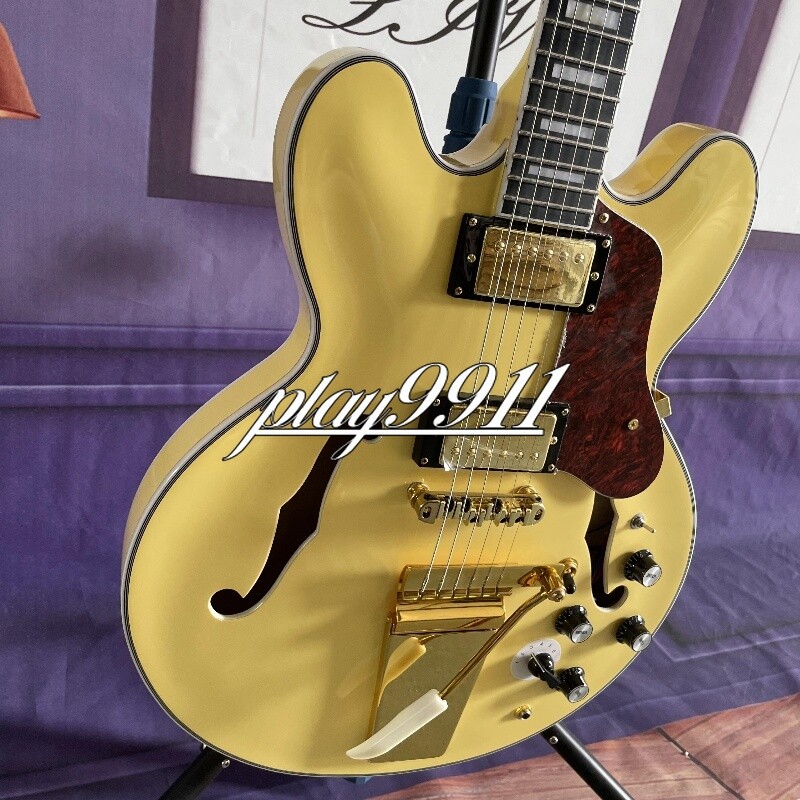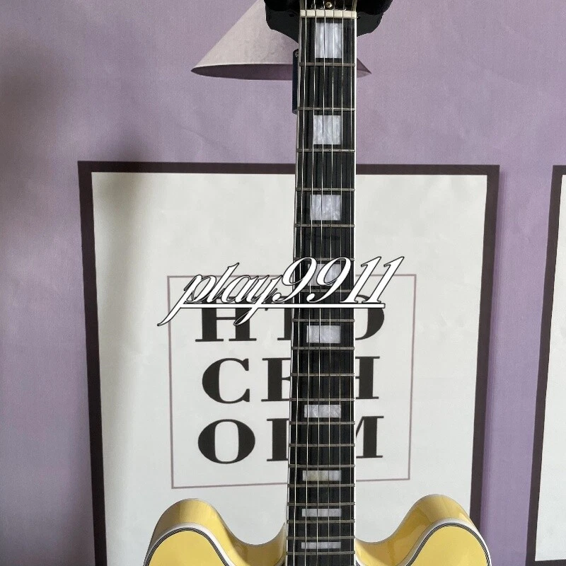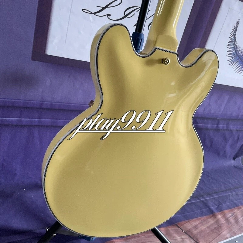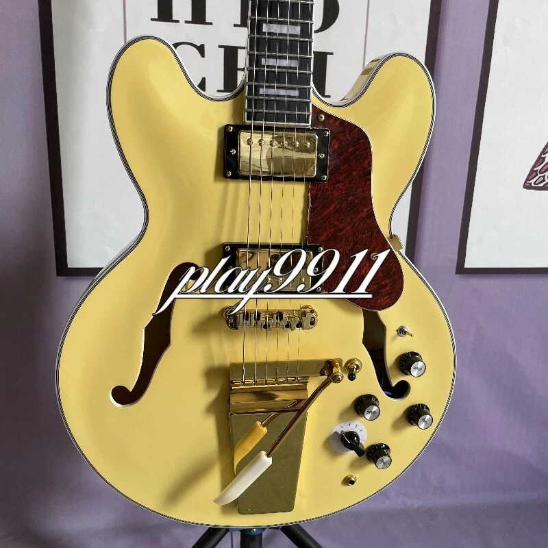 Custom ES Style Cream Semi-Hollow HH Pickups Electric Guitar Gold Hardware Welcome to my store. My team has been making musical instruments for many years. I will try my best to provide the best item for you! Goods condition Body:Mahogany Neck: Mahogany Fingerboard: Black Nut width: 43 mm Scale Length:24.7 inch Joint:Bolt on Hardware:Gold Pickups:2 Humbuckers Pickup Switch: 3-ways Electronic:2 Volume 2 Tone Bridge:Tremolo ABOUT THE PICTURES The pictures are taken in our factories by ourselves. Each guitar is different from others because of the light in room or some other reasons .So there are maybe some differences between the pictures and the guitar you get. Every guitar cannot be the same in 100%, the pictures of the guitar that you see is just one of them. If you want some details about the guitar, please contact me. OUR GUARANT EE We test every guitar (such as buzzing, sound test, workmanship) is in good condition before it is shipped out. When you receive the guitar, if you meet some problems like readjustment the strings or you are not happy with our guitar, please let me know immediately and we will try our best to meet you satisfaction. CUSTOMIZED CEN TER Head stocks are not pictured per our policy. Custom Head stocks are available upon request from our factory custom shop. Please contact us for details. All cutomized products are non-returnable. SHIPPI NG Once payment has been confirmed, your item will be shipped within 3 or 30 business working days. That depends on speciafic goods deliver ways.The speed also base on Custom Clearance Speed, which we can't control .So if you want this for your gig next weekend it probably wont make it on time, so please keep that in mind when ordering. PACKIN G We use the carton which is designed for the International transport to package the products you ordered. And we can guarantee the items will not be damaged in the way of transportation. RETURN POLI CY If the item you received is broken or defective, please contact me immediately and return it within 3 days after you received it with the original or approved packaging. After we received it, we will give you a Full-Refund or Exchange. Buyers are responsible for return shopping costs. If you want to replace it, we will send a new one to you and then forward a shipping label. For missing or replacement parts(from the original order), we will ship them to you. Please read the RETURN POLICY before you order it! FEEDBA CK Thank you for your great comments and feedback. (a) When you are satisfied with your purchase, we sincerely hope that you can give us a positive feedback. Again, we will give you a positive feedback. (b) If you are dissatisfied with your purchase, please contact us submitting a neutral or negative feedback. We will respond to you in 24 hours and work with you until you are satisfied.