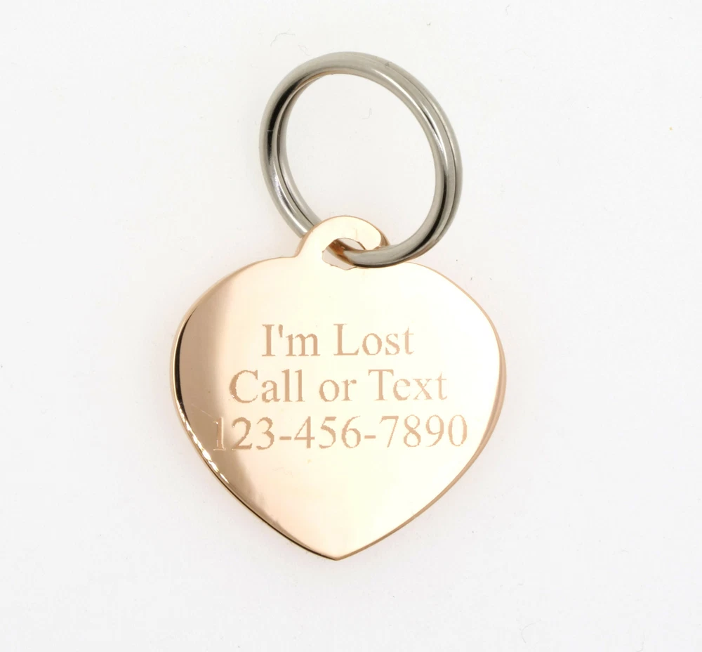 Custom Engraved Personalized Rose Gold Plated Small Heart Dog Tag Pet ID Name
