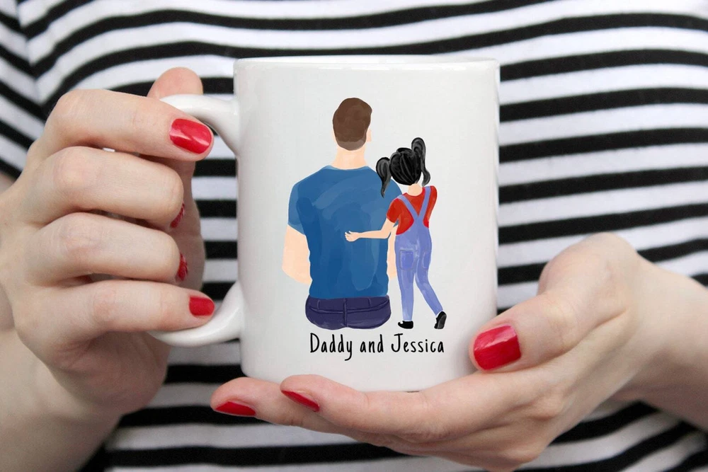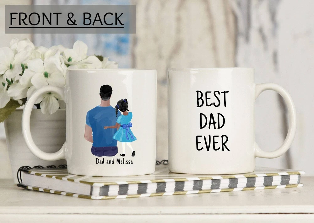Custom Father Daughter Mug Custom Name Father Mug Best Dad Ever Mug Best Daddy Product Details.. This high quality 11oz. ceramic white mug has a premium hard coat that provides crisp and vibrant color reproduction sure to last for years. Perfect for all hot & cold beverages. The highest quality printing possible is used. It will never fade no matter how many times you wash it. Material: 100% Ceramic. Print both sides. Dishwasher and Microwave Safe. High Gloss + Premium White Finish. Printed in the U.S.A. Personalized & Custom. We support personalized and custom mug to add custom, when placing an order, you can add notes to the "order note" in shipping address section. Also you can contact us directly via message. Shipping Info. Ready to ship in 1 to 2 business days, All products are made-to-order and proudly printed in the United States. Shipped by USPS and DHL, You will receive your order in 5-7 days. Replace & Refund. All products are defective during shipping broken, chipped will be replaced free of charge. You are not satisfied with the product, we will refund 100% money to you. If any other issues arise, please do not hesitate to message, we would be more than happy to assist you.