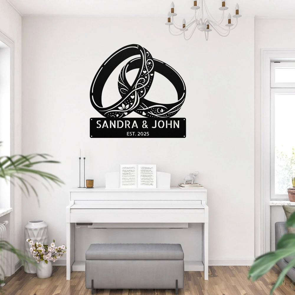 Product Description Custom Floral Rings Metal Sign Personalized Couple Wedding Anniversary Gifts Celebrate love and commitment with this Custom Rings Metal Sign , a beautifully designed personalized wedding gift perfect for newlyweds, engaged couples, anniversaries, and romantic home decor . Featuring interlocking rings, elegant script, and a customizable name or date , this high-quality metal sign is a timeless symbol of eternal love . 🌟 Key Features: ✔ Customizable with Names, Wedding Date, or Special Message – A unique and heartfelt keepsake . ✔ Premium-Quality Metal – Crafted from durable, rust-resistant steel or aluminum for long-lasting elegance . ✔ Beautiful Wedding Ring Design – A symbol of love, unity, and commitment . ✔ Weather & Fade-Resistant Finish – Ideal for both indoor & outdoor display . ✔ Perfect for Wedding Gifts, Anniversaries, & Home Decor – A romantic and meaningful addition to any space. 🎁 A Thoughtful Gift for Couples! 🎁 Looking for a special wedding, engagement, or anniversary gift ? This personalized rings metal sign is a one-of-a-kind present that newlyweds and long-time couples will cherish forever. 📏 Available Sizes: Choose from multiple sizes to fit bedrooms, living rooms, wedding venues, or reception areas . 🔧 Easy to Hang & Display: Comes with pre-drilled holes for quick and secure mounting on walls, doors, or wedding backdrops . 💍 Perfect for: Wedding & Engagement Gifts 👰♀️🤵♂️ Anniversary & Romantic Home Decor ❤️ Bridal Shower & Couple’s Celebration 🎉 Bedroom & Living Room Wall Art 🏡 Wedding Reception & Venue Decorations 💐 Service and Color Choice Our metal signs are designed to be personalized just for you, making them the perfect addition to any space! The default color for our signs is Black , but we also offer a variety of beautiful options including Copper, Gold, White, and Silver . After placing your order, simply contact us with your preferred color choice, and we'll ensure your sign is exactly how you envision it. Let’s create something special together!