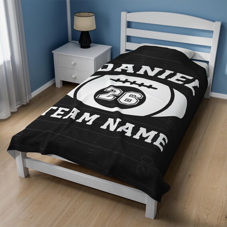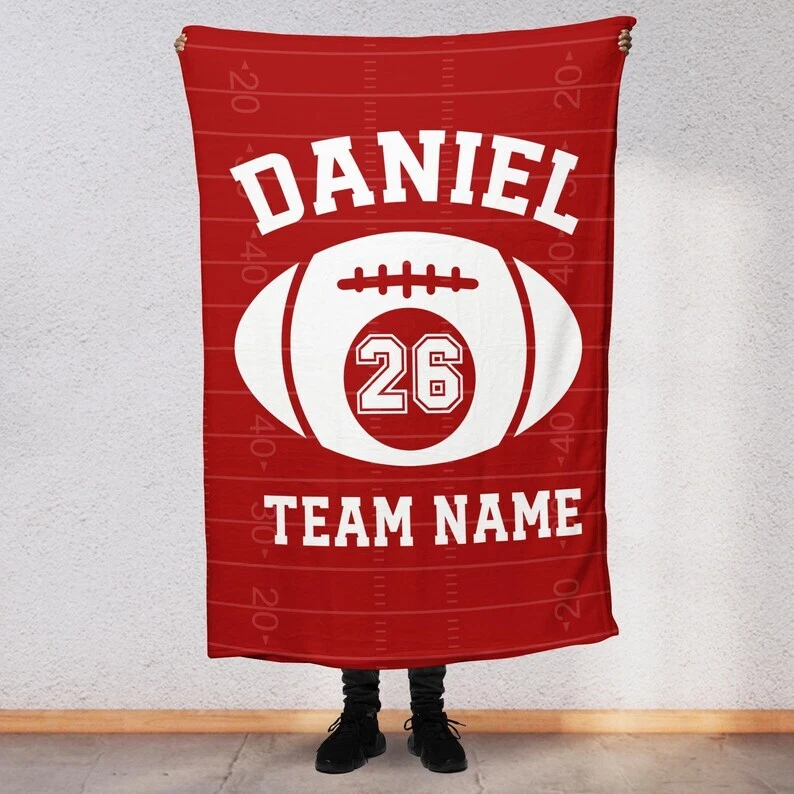 Custom Football Stadium Blanket Personalized Printed Name and Number Beeding