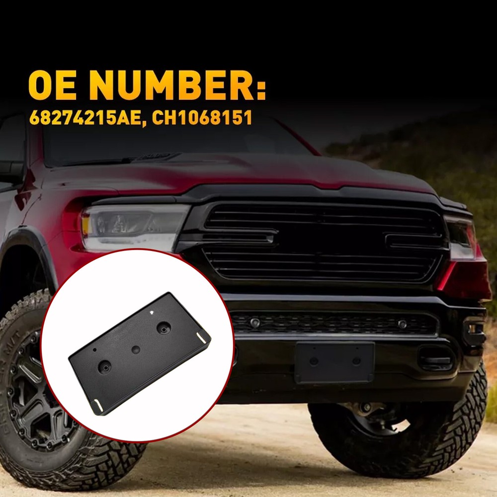 Front License Plate Holder Mount Bracket For Dodge Ram 1500 2019 2020 2021 Feature: *High quality material Made of superior ABS material without rust,corrosion,stripping to ensure its high durability . *Direct replacement Direct replacement from stock application. Drillings and cuttings are not requried. *Perfect fit Manufactured according to originals for a perfect match with your car. *All tested before shipment All products were tested for performance and to ensure the accurate parameter for your vehicle. *Warm notice Please double-check the part number and models in the description to guarantee it fits your vehicle before ordering. Specification: OE:68274215AE, CH1068151 Material:ABS Fits for: 2019-2022 Dodge Ram 1500 Package include: License plate bracket*1