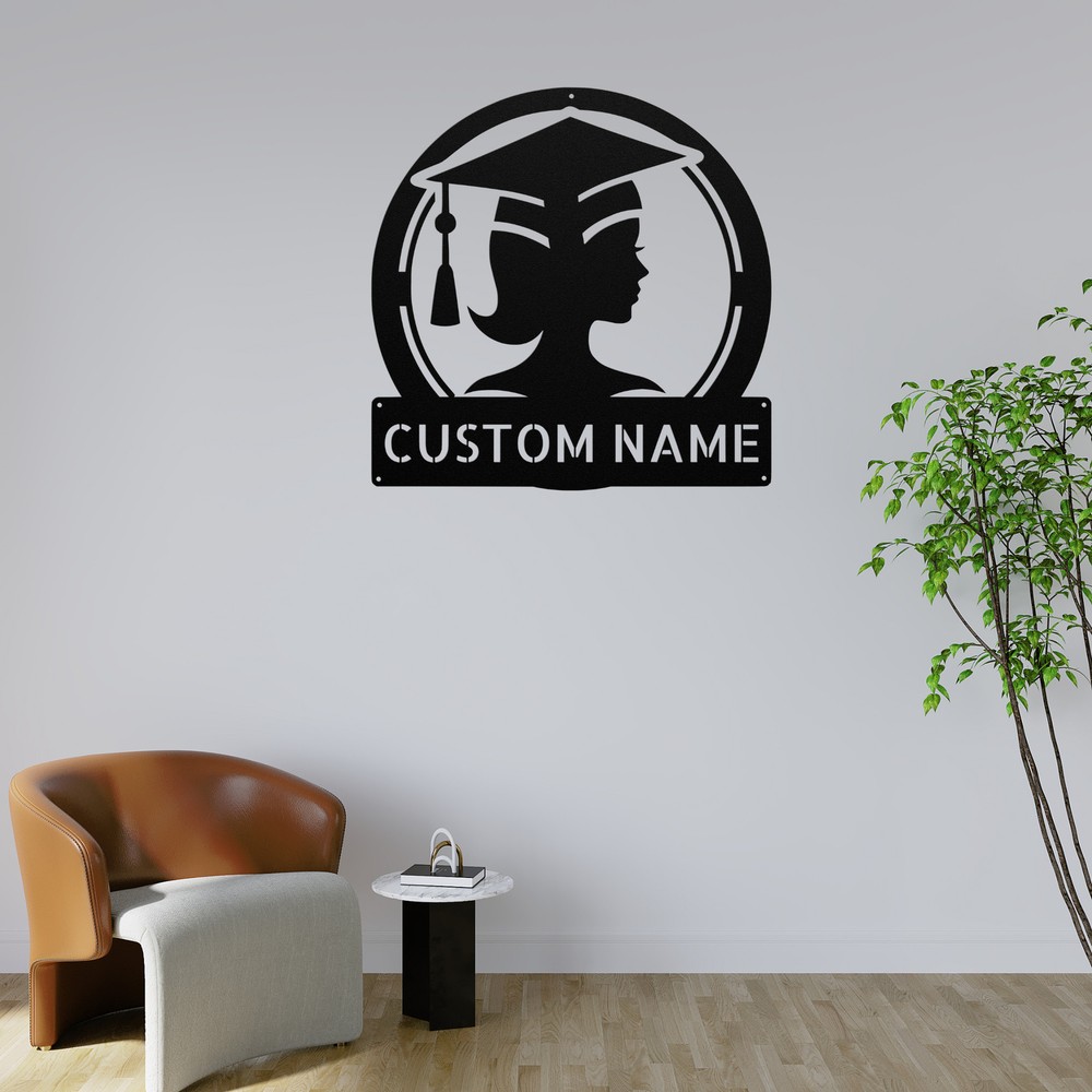 Product Description Personalized Girl Grad Cap Metal Sign Custom Graduation Decor Unique Gift Idea Celebrate a special achievement with the Personalized Girl Grad Cap Metal Sign ! This delightful sign is the perfect way to honor a graduate and add a personal touch to any space. Made from 16 gauge high-quality metal , this sign is designed for durability. The powder coating ensures it is dust, weather, and water-resistant, making it suitable for both indoor and outdoor display. Key features include: Customizable Design: Personalize it with the graduate’s name and graduation year. Sturdy and Long-Lasting: Crafted from high-quality metal for enduring use. Perfect Gift: An ideal choice for graduations, birthdays, or any special occasion. Stylish Decor: Great for home, office, or dorm room decoration. Show your pride and create a lasting memory with the Personalized Girl Grad Cap Metal Sign . It’s not just a sign; it’s a cherished keepsake that celebrates success! Service and Color Choice Our metal signs are designed to be personalized just for you, making them the perfect addition to any space! The default color for our signs is Black , but we also offer a variety of beautiful options including Copper, Gold, White, and Silver . After placing your order, simply contact us with your preferred color choice, and we'll ensure your sign is exactly how you envision it. Let’s create something special together!
