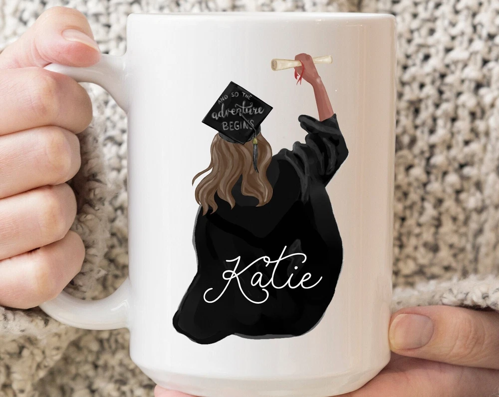 Custom Graduation Mug Personalized Graduation Gift College Graduation Gift For Her Class Of 2022 Graduate Gift Custom Coffee Mug Product Details.. This high quality 11oz. ceramic white mug has a premium hard coat that provides crisp and vibrant color reproduction sure to last for years. Perfect for all hot & cold beverages. The highest quality printing possible is used. It will never fade no matter how many times you wash it. Material: 100% Ceramic. Print both sides. Dishwasher and Microwave Safe. High Gloss + Premium White Finish. Printed in the U.S.A. Personalized & Custom. We support personalized and custom mug to add custom, when placing an order, you can add notes to the "order note" in shipping address section. Also you can contact us directly via message. Shipping Info. Ready to ship in 1 to 2 business days, All products are made-to-order and proudly printed in the United States. Shipped by USPS and DHL, You will receive your order in 5-7 days. Replace & Refund. All products are defective during shipping broken, chipped will be replaced free of charge. You are not satisfied with the product, we will refund 100% money to you. If any other issues arise, please do not hesitate to message, we would be more than happy to assist you.