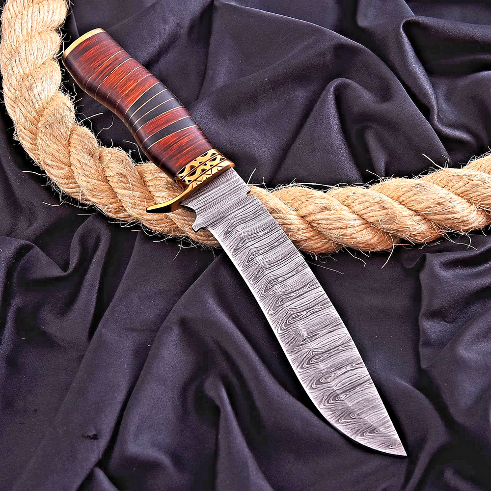 Custom Hand Made Damascus Steel Blade Hunting Bowie Knife Wood Handle HH-105