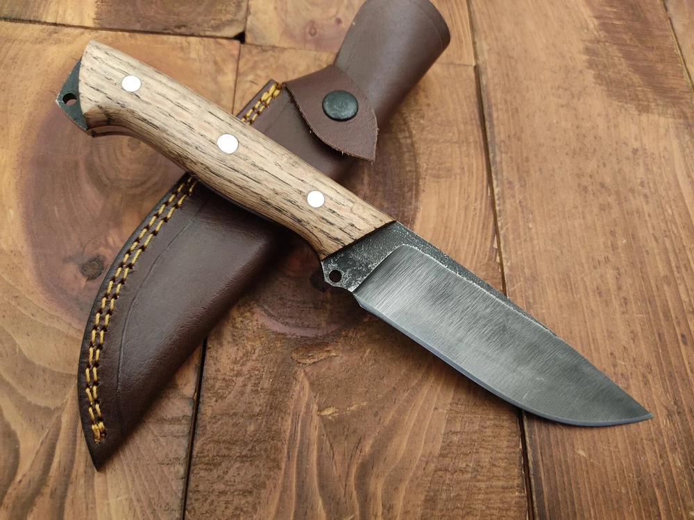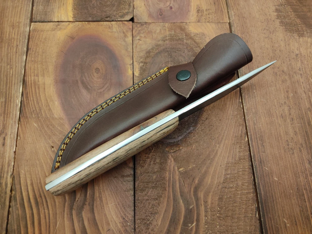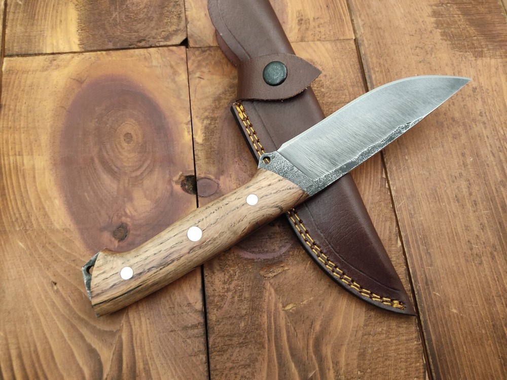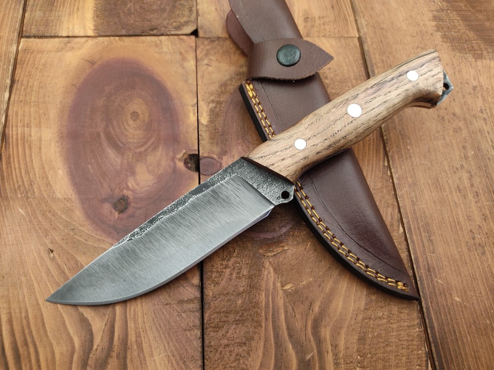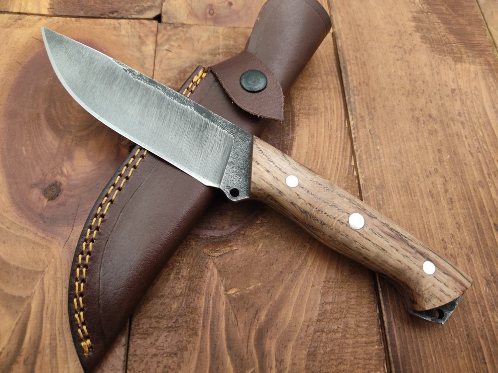 ITEM # HM-150 Fabulous Unique THUNDER STORKE Custom MADE KNIFE Custom Handmade Forged 1095 High Carbon Steel Camping Survival Outdoor Vintage Hunting Fixed Blade Knife High Carbon Steel holds an edge very well and is optimum for hunting and skinning use as well as tactical and military tasks. The steel is very corrosive and will tarnish and turn the blade black when blood and acidic liquids or chemicals get onto the blade. The blade will still work fine, but will lose the satin color when it was new. Oak Wood Handle 1095 High Carbon Steel Acid Washed Blade RAZOR SHARP Gorgeous Handle & Blade 10.2" Long | Blade is 5.1" Long | Handle is 5.1" 4 mm Thick Blade | Beautiful Worked Blade & Handle WORK OF ART This prestigious unique HUNTING knife was designed and custom made by THUNDERSTORKE . Blade was given excellent heat treatment and Rockwell hardness of the blade 58 to 60 . PAYMENT: As Per Ebay Requirement DISPATCH TIME: 2 to 3 DAYS AFTER RECEIVING YOUR PAYMENT COURIER / SHIPPING: When we print the postage label there is a number that is on the label. This number is called a "Delivery Confirmation Number". The post office is not like UPS or FEDX where they scan the mail at the receipt point and then track it to your door. What the post office does is scan the item when it is delivered (if they choose to) and then you will see that it was delivered. Sometimes they do scan it when you drop it off, but this is rare. If they did scan it at a sorting facility, you see it moving across the USA. But this is very rare. - eBay confuses the buyer with the "tracking number" next to the post offices "delivery confirmation number" when in reality there is not a tracking number. You can ask this at the post office and they will concur. We print labels off the internet using eBay's USPS shipping program and then we drop the packages off at the post office, similar if you were mailing a stamped letter. The post office is supposed to scan it "received" and they do this about 50% of the time. But sometimes they do not scan them. Do not worry, we did mail the item and it is on it's way to you. COMBINE SHIPPING OFFER: We Do Combine Shipping Discount On Multiple Purchase are as Follow. BUYER FEEDBACK AND Detailed Seller Ratings (DSR) SCORES : We spend a lot of time trying to describe our knives 100% perfect in detail, but sometimes we miss things. In the event that we missed something, upon inspection of the item when you receive it, let us know by contacting us via the "Contact Seller" link (next to our user ID profile) and allow us to solve your problem before leaving us low DSR scores (Detailed Seller Ratings) or neutral and negative feedback. - Help us, help ourselves to do better, with our future business on eBay by allowing us to correct our faults and fix the sale with you to a positive. We need to keep our scores high to continue to offer our great knives for sale on eBay. KNIFE CARE and SHEATHS : Leather sheaths pull moisture out of the air and tend to rust knife blades if not stored properly. When you are done using the knife, store it away from the leather sheath and put gun oil, Seal 1, or a similar protectant on the blade and store. Damascus, 1095HC, and D2 can rust and develop stains if not lubricated. AGE RESTRICTION: WE DON'T SELL KNIVES TO ANY ONE WHO IS UNDER AGE . GUARANTEE: If you are not happy with your purchase, we offer you a peace of mind guarantee if you return the product within 7 working days. We will refund your money back immediately ON RECEIVING THE KNIFE BACK IN ORIGINAL CONDITION. DELIBERATE TAMPERING WITH THE PRODUCT OR MISUSE WILL NOT QUALIFY FOR THE REFUND. SHIPPING CHARGES ARE NON-REFUNDABLE. DISCLAIMER: WHEN YOU ARE BIDDING ON THIS KNIFE YOU ARE CONFIRMING US THAT YOUR AGE QUALIFIES FOR THIS PURCHASE AND THIS IS A LEGAL PURCHASE. TAKES NO RESPONSIBILITY FOR ANY ILLEGAL PURCHASE Thank you, - Props in the Photos are NOT INCLUDED. Knife & Sheath ONLY .